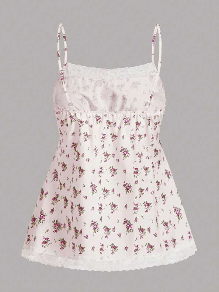 Kawaii قميص كاميسول بأشرطة سباغيتي لامعة وبخصر مشدود للنساء، زهري بتباين كشكش الرباط السفلي