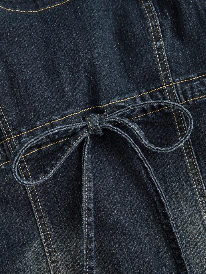 Kawaii فستان جينز صيفي كاجوال مغسول للنساء مع رقبة مكشكشة وأربطة رفيعة ، للمدرسة
