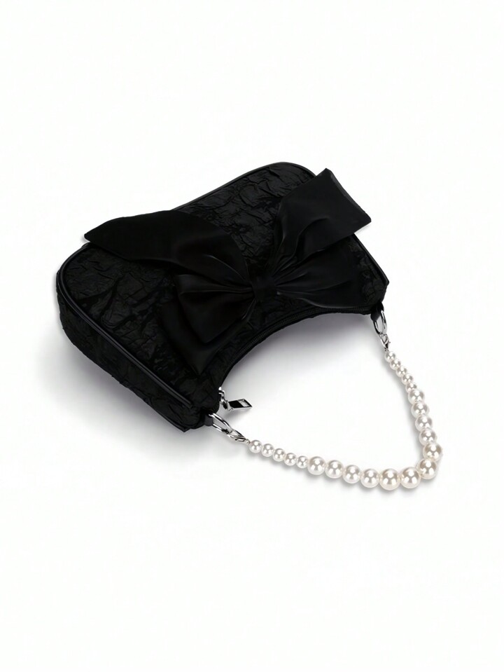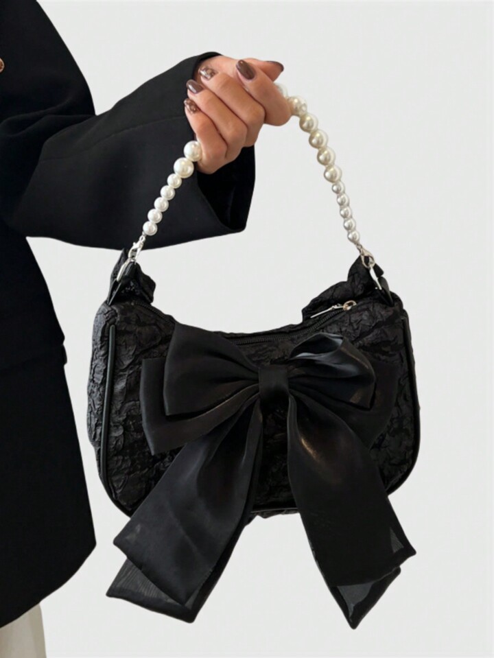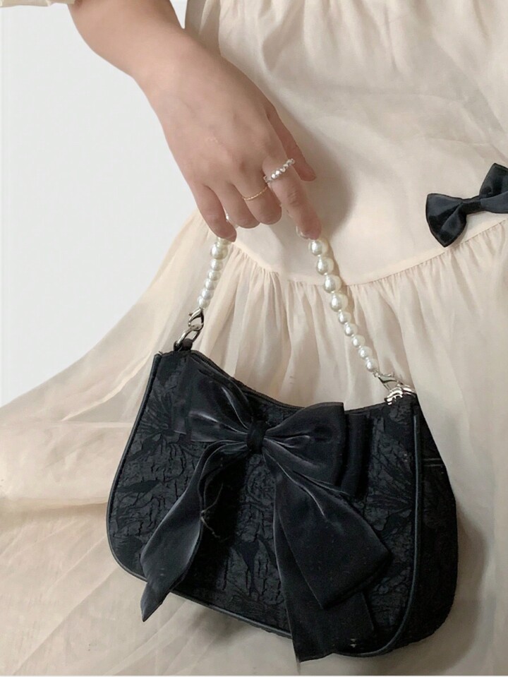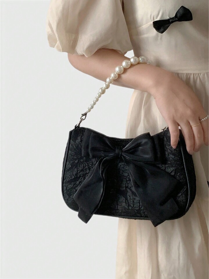 Kawaii حقيبة كتف نسائية على الطراز الفرنسي القديم، بشريط وردي اللون، أنيقة وجذابة، مزينة بخيوط تقليد اللؤلؤ، يمكن حملها باليد أو تحت الذراع، حقيبة عبر الجسم راقية وجميلة رومانسية مناسبة لعيد الحب