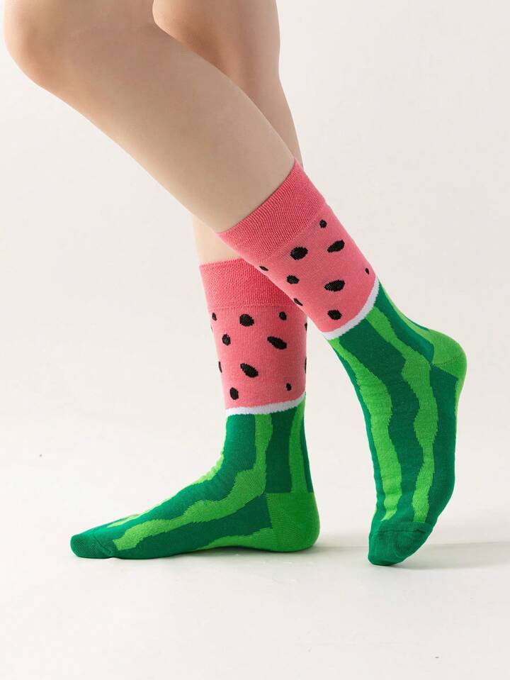 Kawaii جوارب قصيرة نصف الساق مطبوعة برسومات البطيخ أنيقة للنساء، مناسبة للاستخدام اليومي