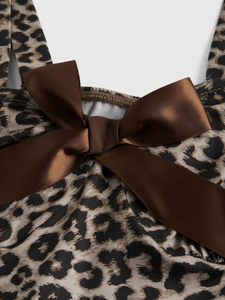 Kawaii فستان يدوي بعقدة مطبوع بتصميم نمري جذاب للنساء بطبعات زائدة Y2K