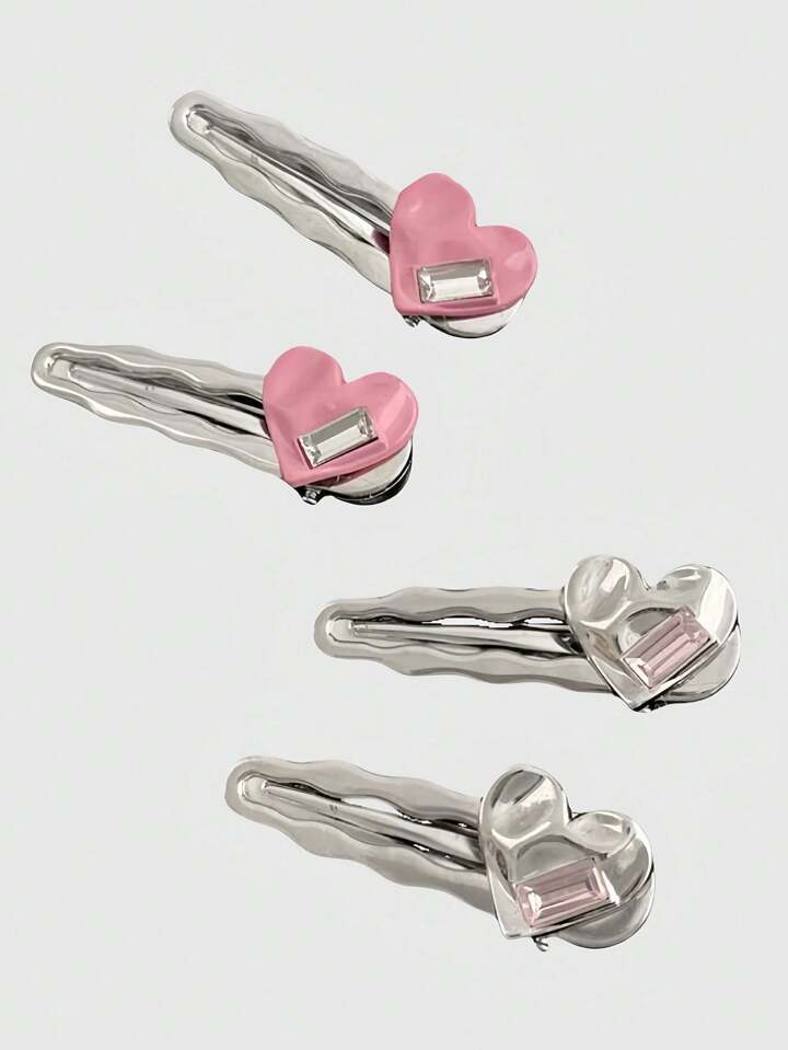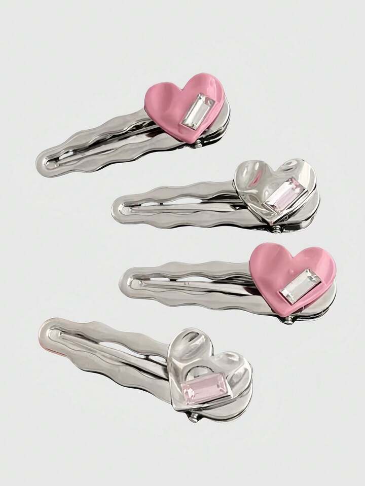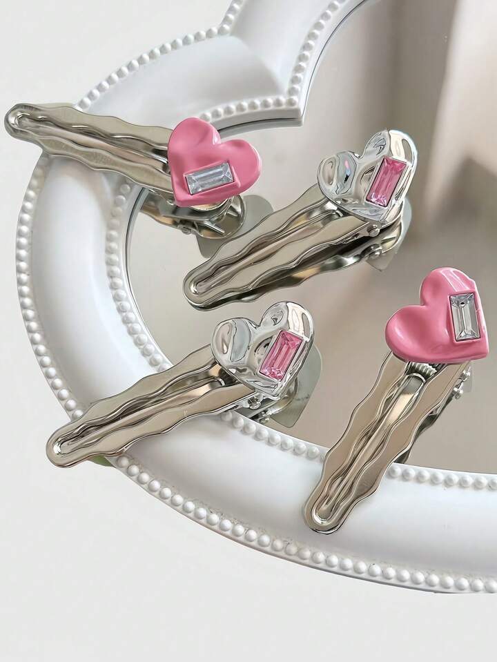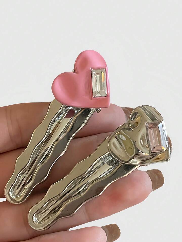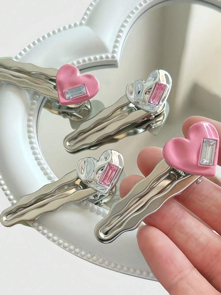 Kawaii مشبك شعر على شكل قلب مرصع بالراين من طراز Y2K، مشابك شعر جانبية أنيقة