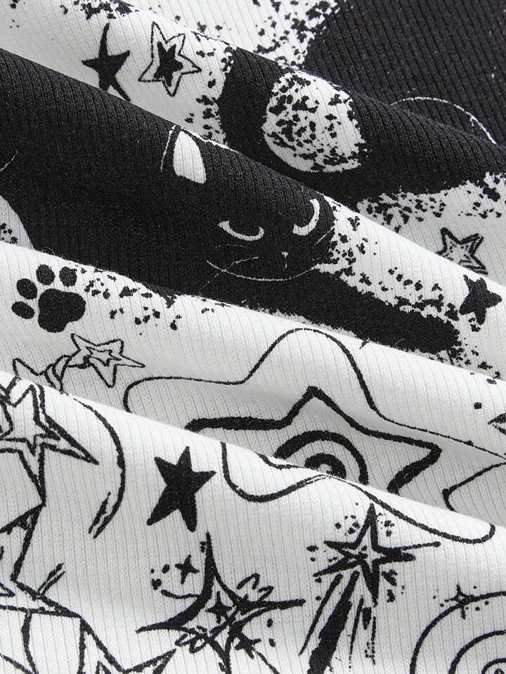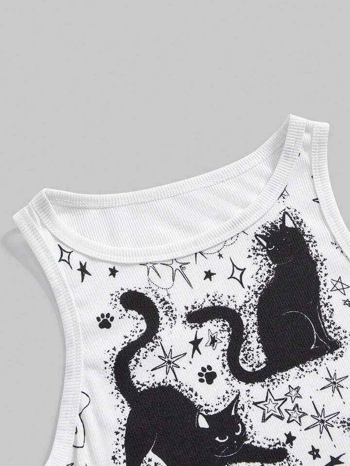 Kawaii توب كامي قصير بتصميم نحيف مطبوع بنجوم وقطط ل- النساء من ثقافة الفرعية Y2K