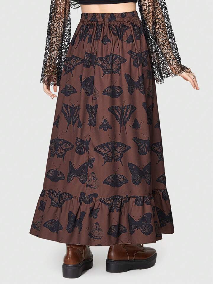 Kelsey Wilson Studio تنورة بطباعة الفراشة حافة مكشكشة