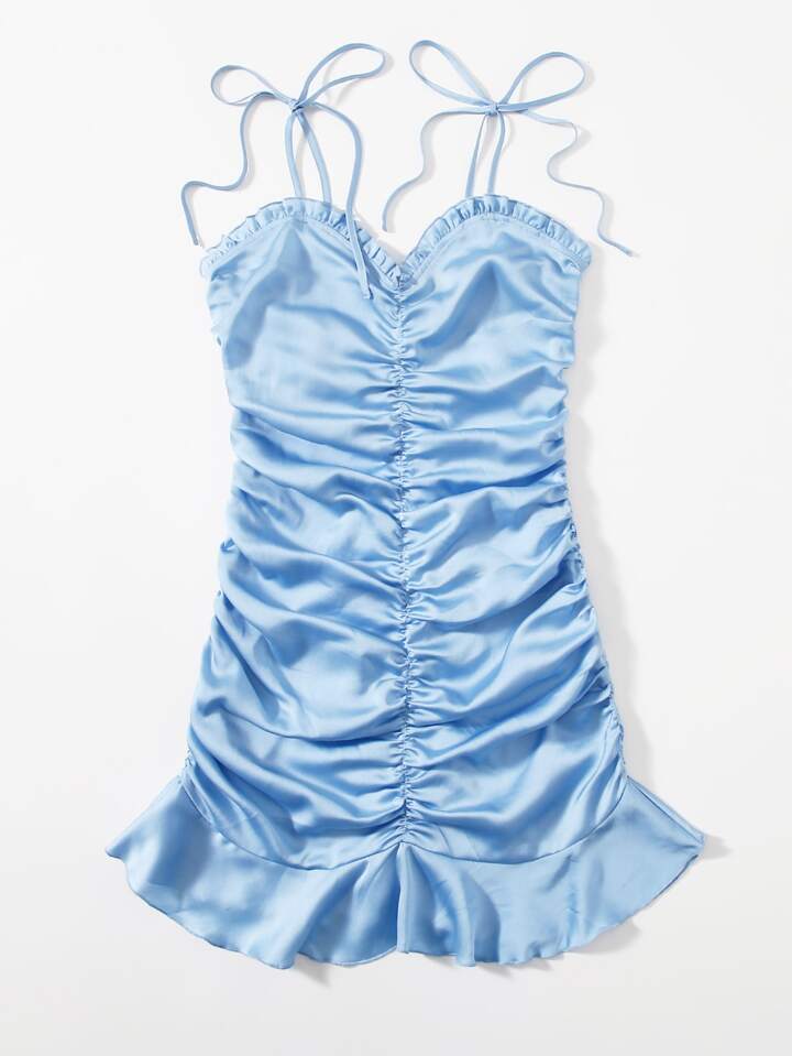 فستان كامي مكشكش بحمالات بعقدة