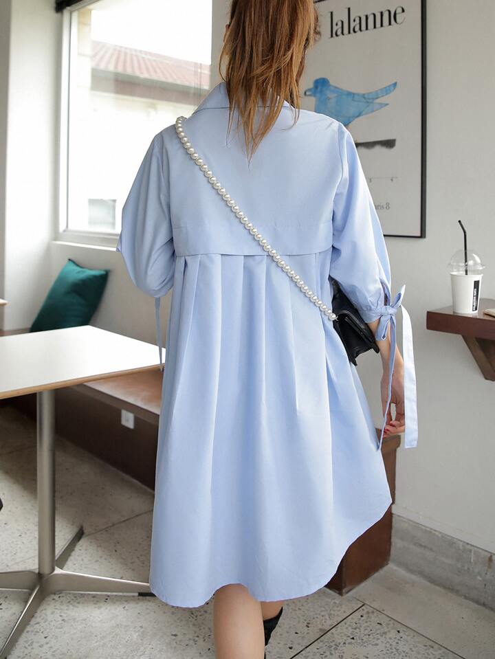 فستان صيفي كاجوال بأكمام منفوخة وياقة مكشكشة، ملابس عودة إلى المدرسة للنساء