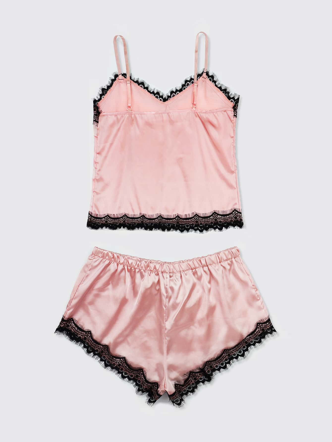 شورت مع لباس علوي بحمالات ساتان ومقلم بدانتيل