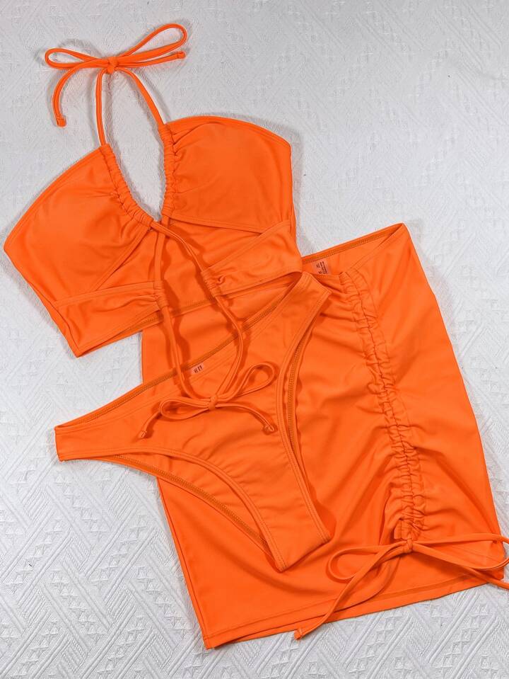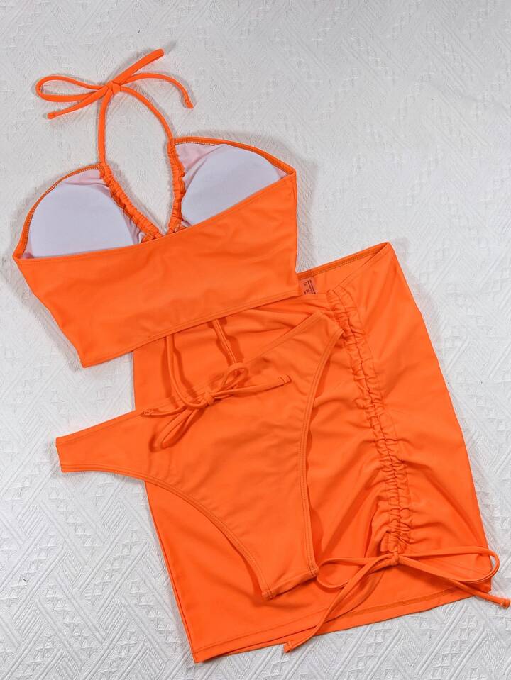 مجموعة بكيني مقصوص مع خيط سحب تنورة شاطئ، لإجازة الصيف