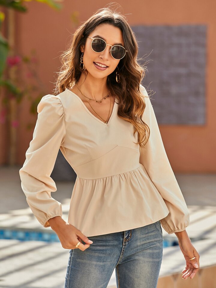 لباس علوي مطوي الثنايا بسستة خلفي باكمام فانوس