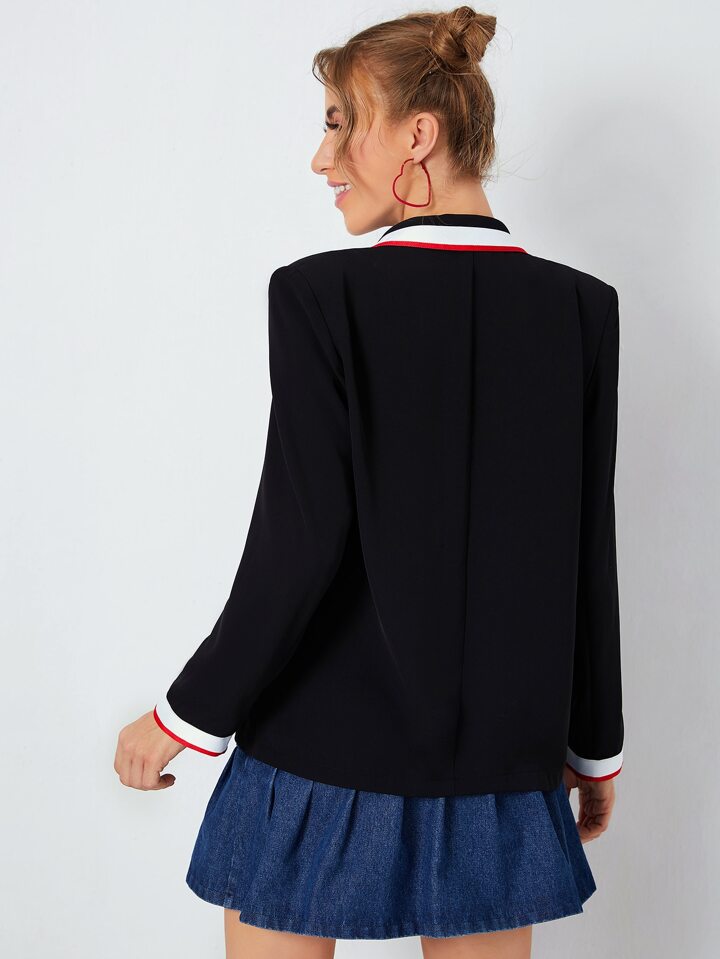 بليزر بازرار امامي بشريط متباين وبعنق مفتوح