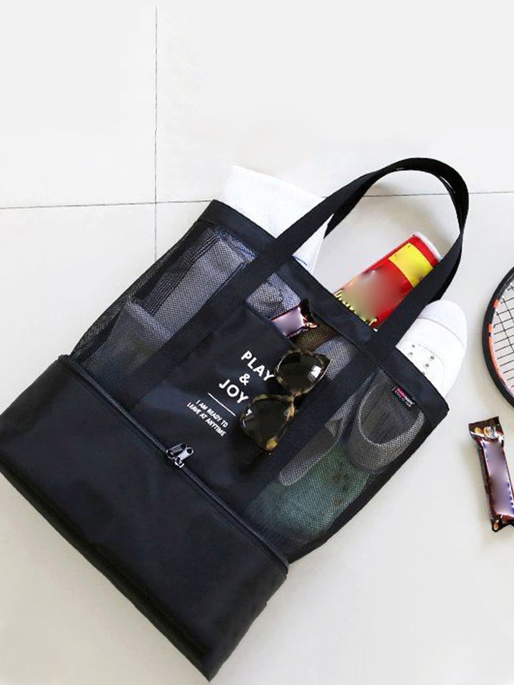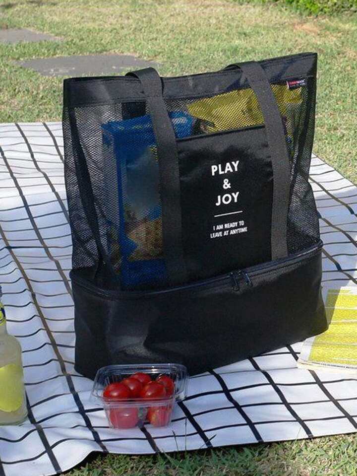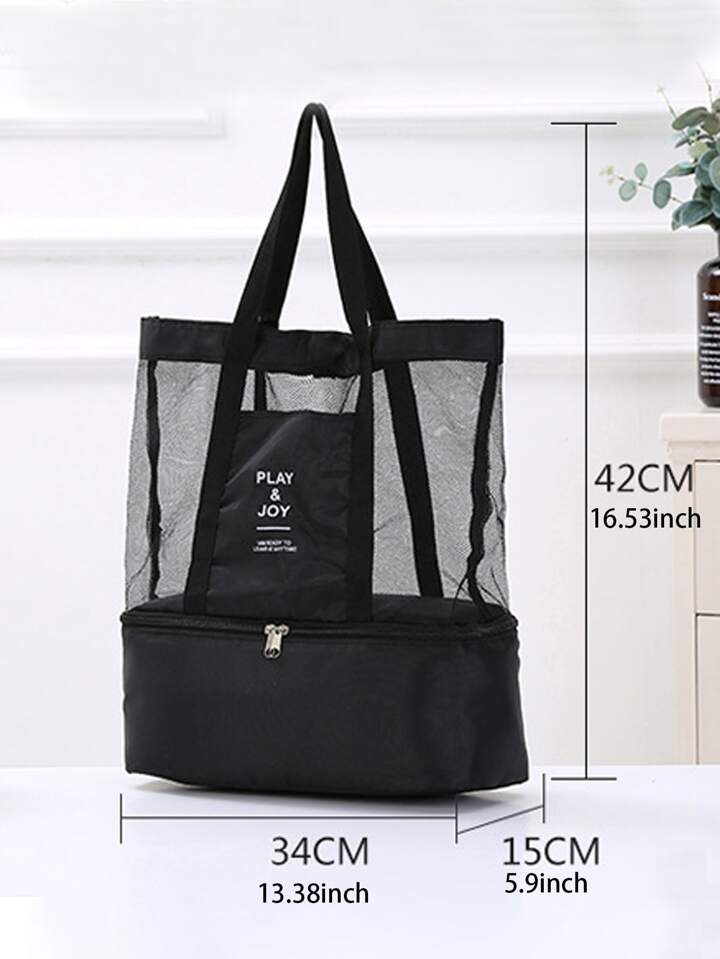حقيبة كبيرة شبكية للشاطئ مع سحاب ومبرد نزهة معزول ومقاوم للتسرب لصالة الألعاب الرياضية في الهواء الطلق لحمام السباحة