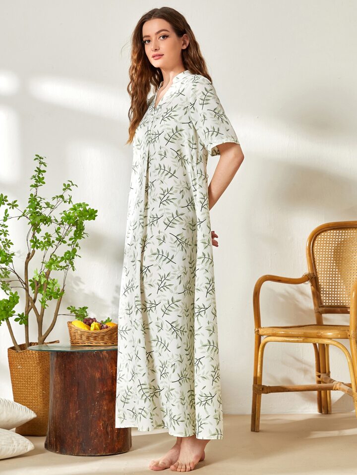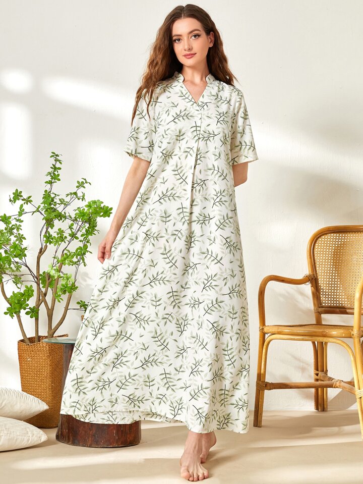 فستان نوم طباعة الأوراق ياقة مفتوح