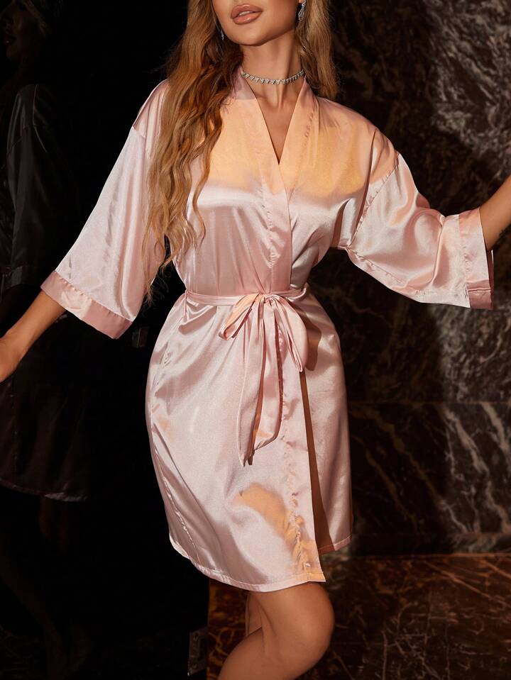 رداء حريري مطرز بالحرف مع حزام للوصيفات، ملابس منزلية فاخرة، خريف وشتاء