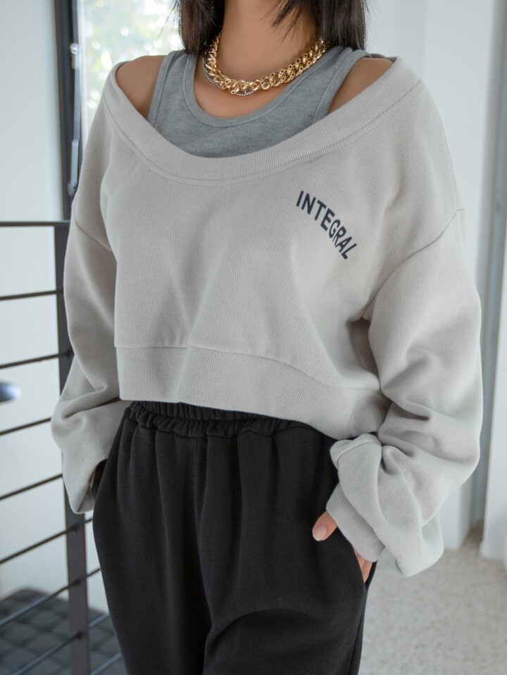قميص ثقيل بطباعة أحرف كتف مكشوف 2 في 1