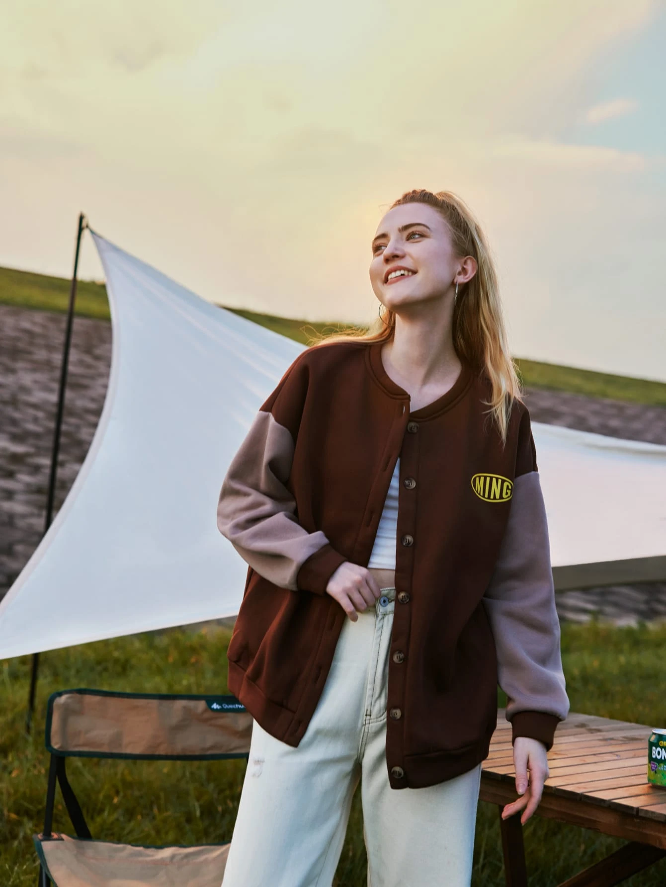 قميص ثقيل بأزرار امامي منخفض الكتف بالوان متجانسة بجرافيك عبارة