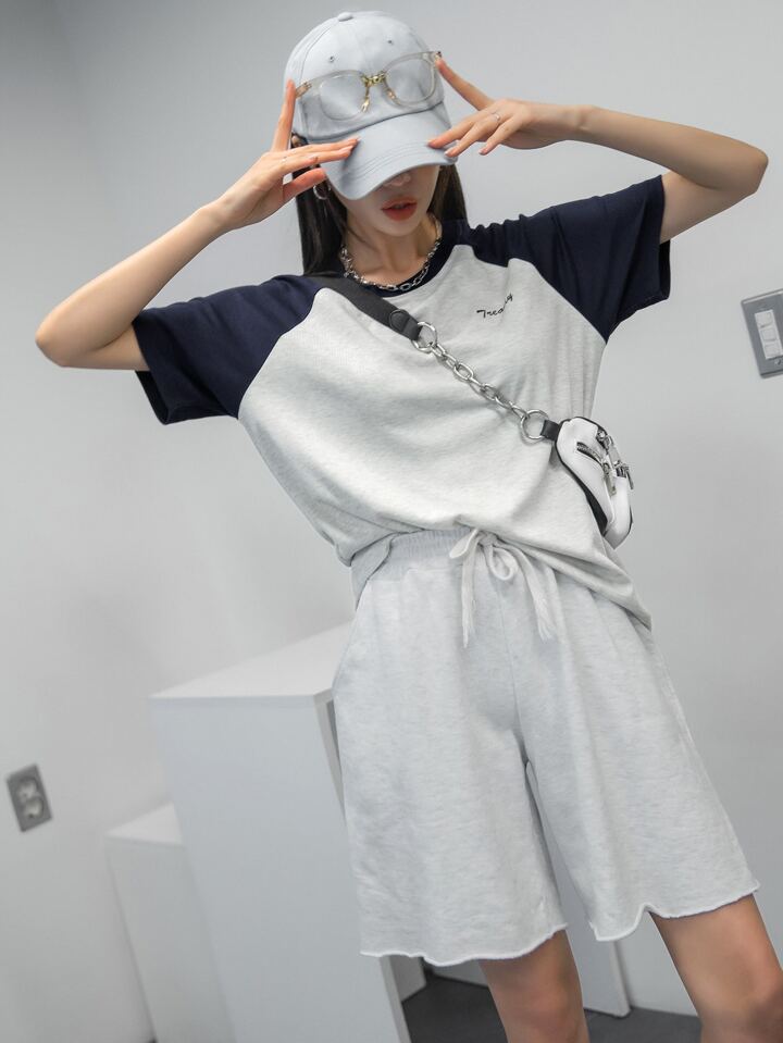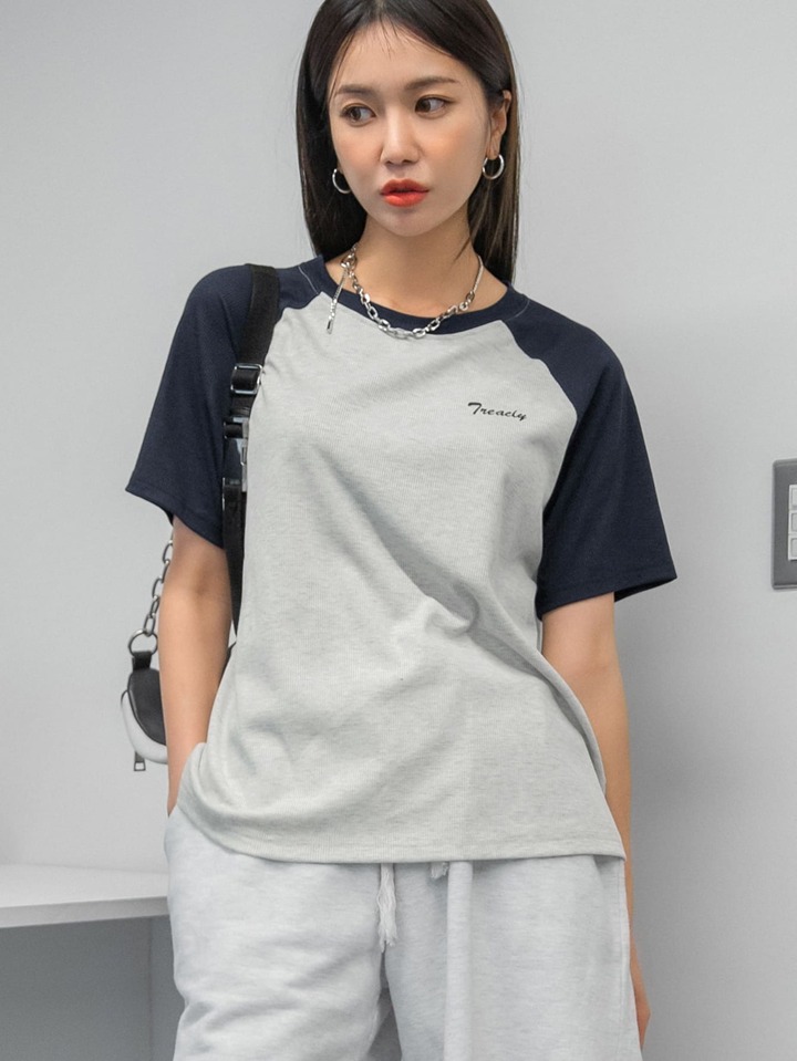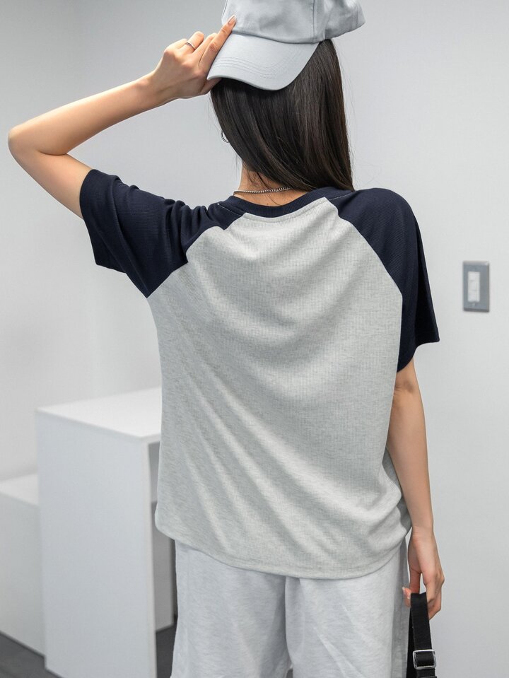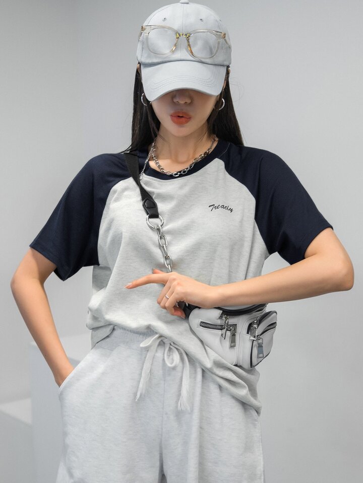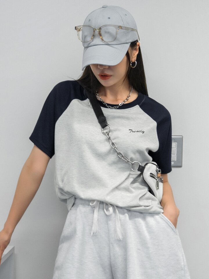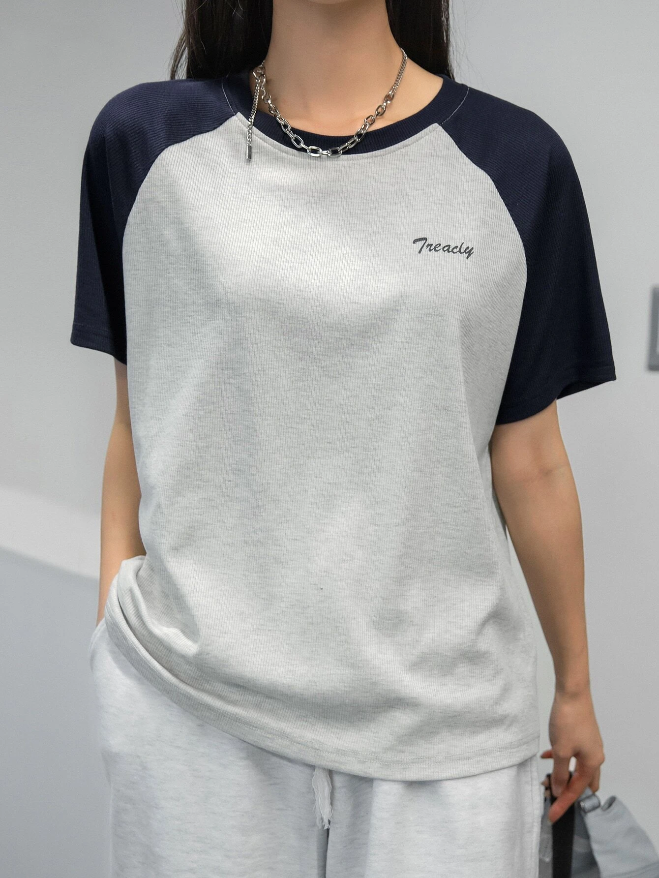 تي شيرت بأكمام راجلان ثلاثية الألوان وطبعات حرفية