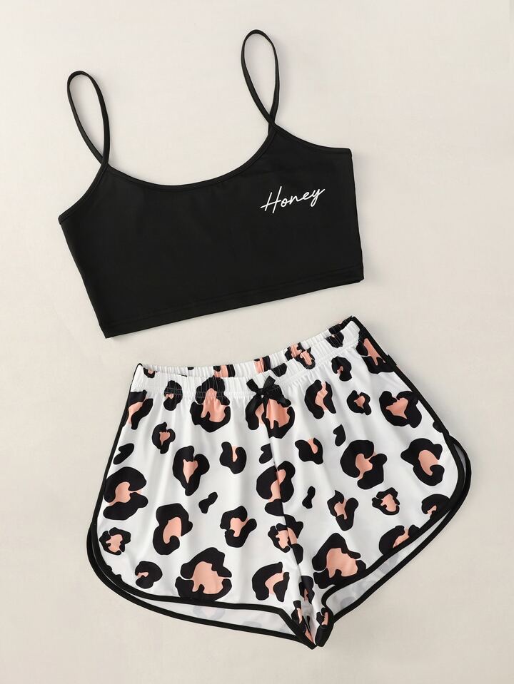 مجموعات بيجامة نسائية بشريط متاين خط الفهد رسالة لطيفة
