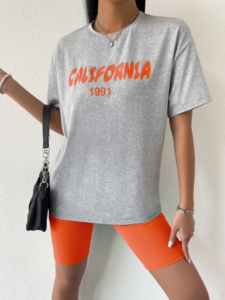 بطباعة أحرف تي شيرت منخفض الاكتاف مع شورت ركوب الدراجات النارية