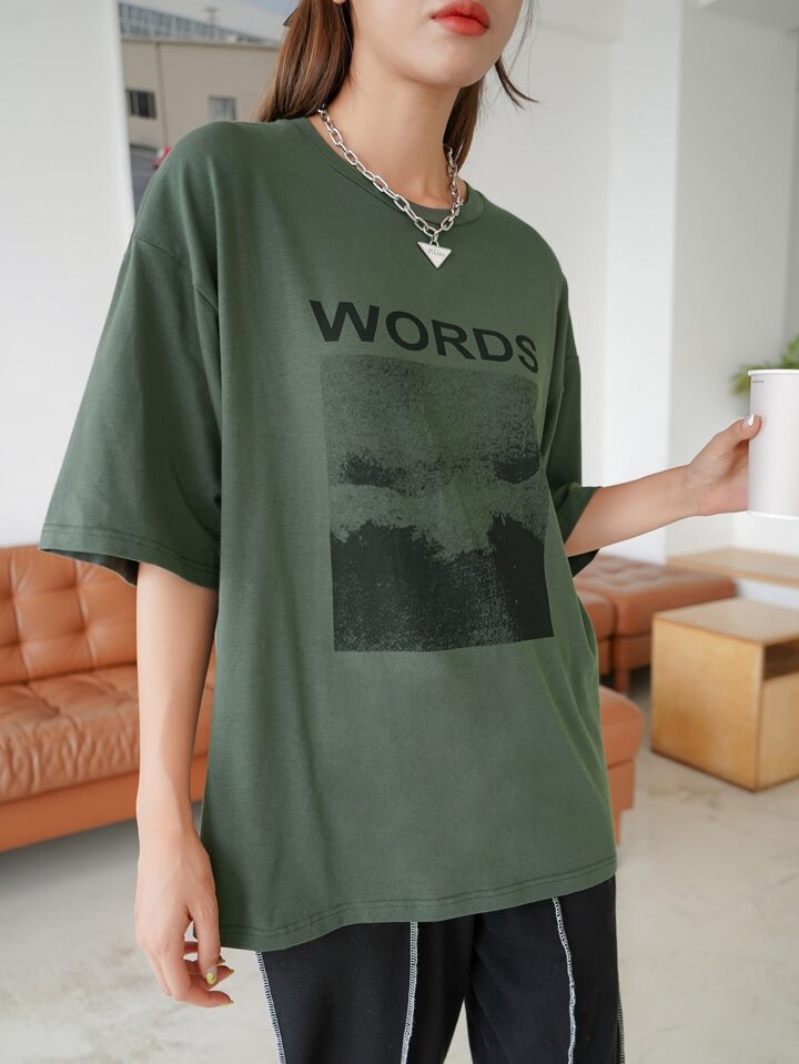 تي شيرت باكمام نصف بجرافيك عبارة