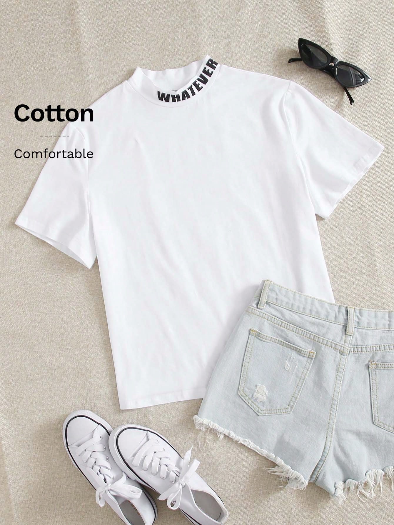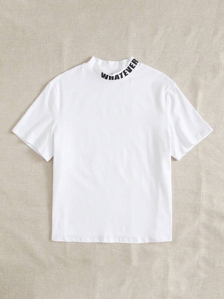 تي شيرت رقبة مزيفة مطبوع عليه حرف