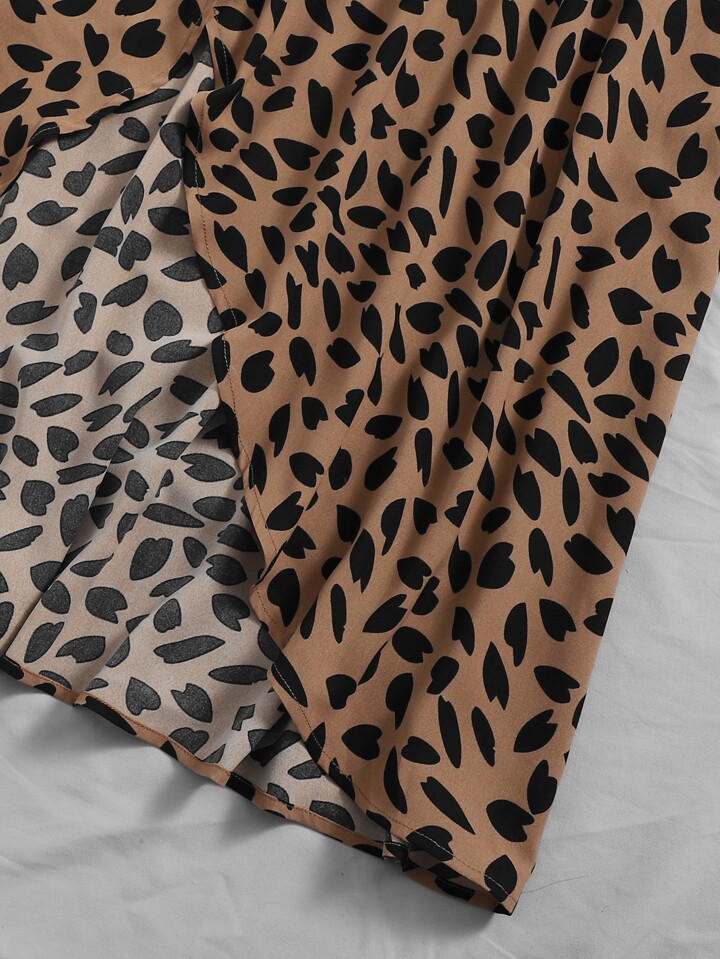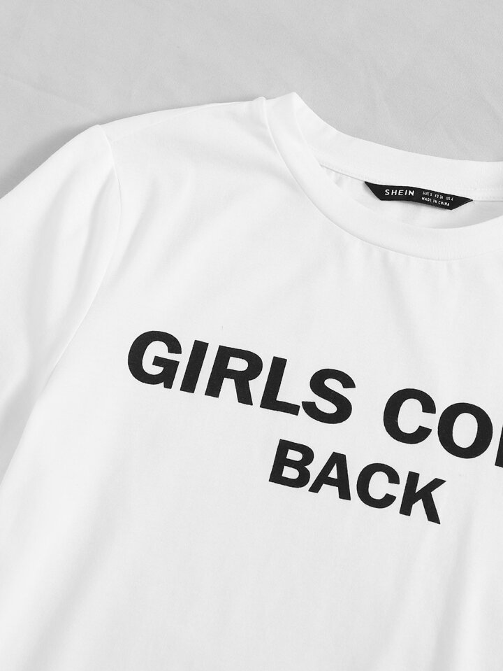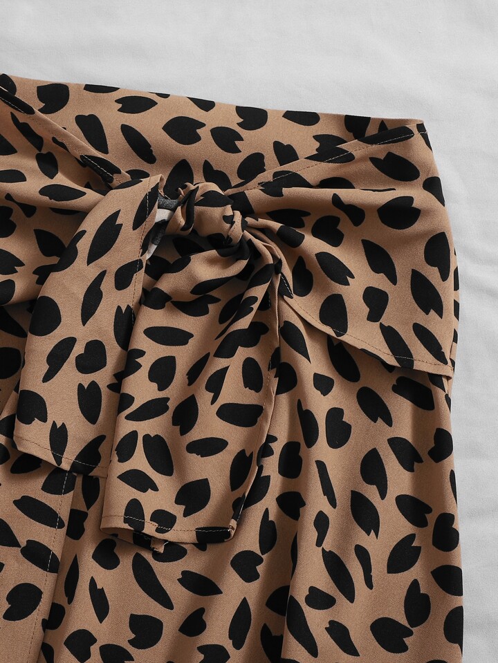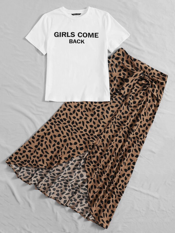 طقم تنورة بطباعة شامل بحافة غير متماثل معقود من الامام مع لباس علوي بجرافيك عبارة