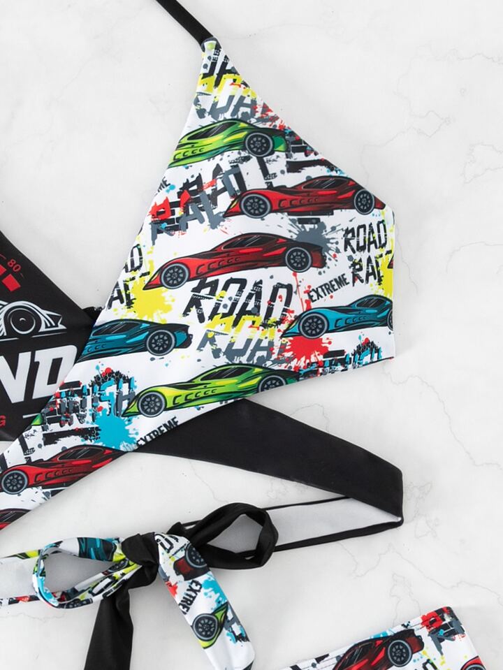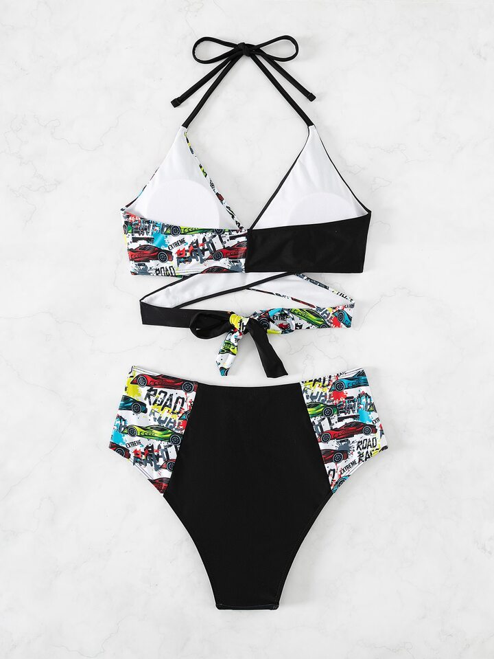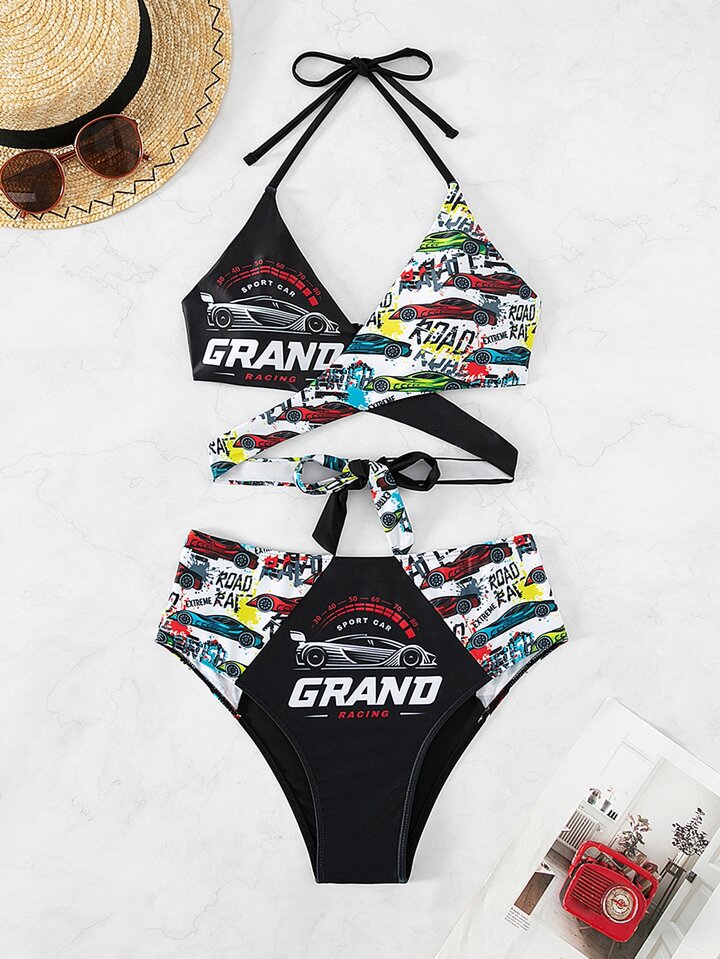 بكيني صيفي بحمالات ربطة حرف الرسوم البيانية للشاطئ