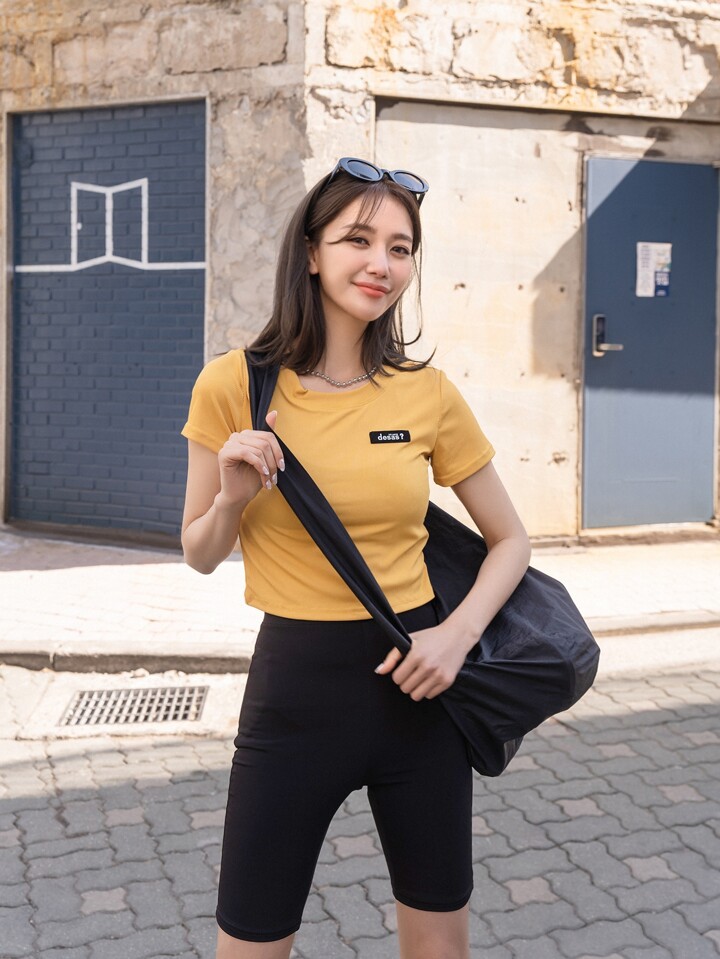 تي شيرت قصير محبوك مضلع مرقع بعبارة
