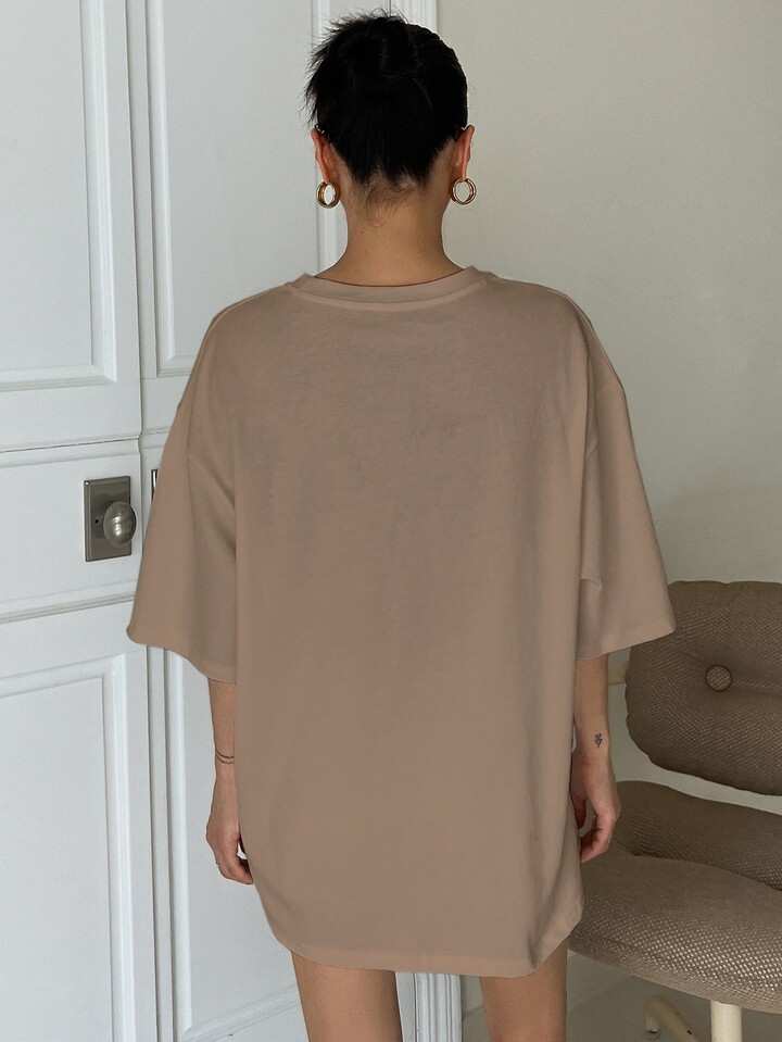 تي شيرت بنمط حرف الانجليزية وكتف منخفض