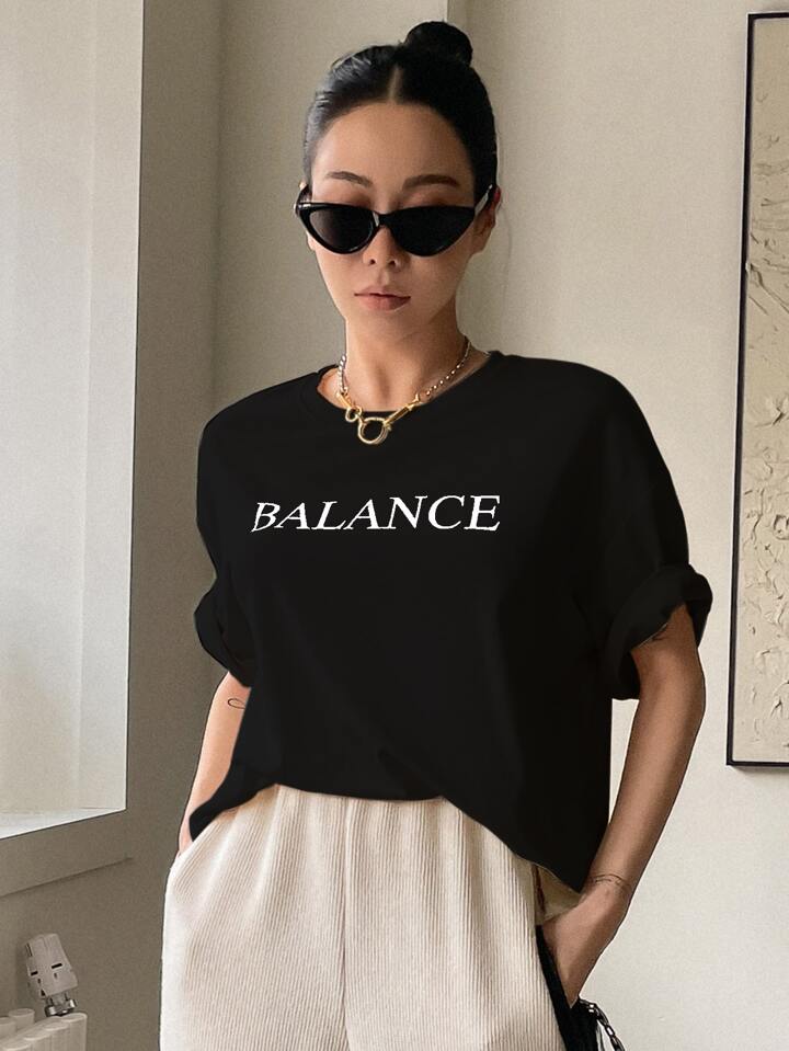 تي شيرت كتابي بياقة منسدلة، ملابس علوية صيفي بطراز بريبي