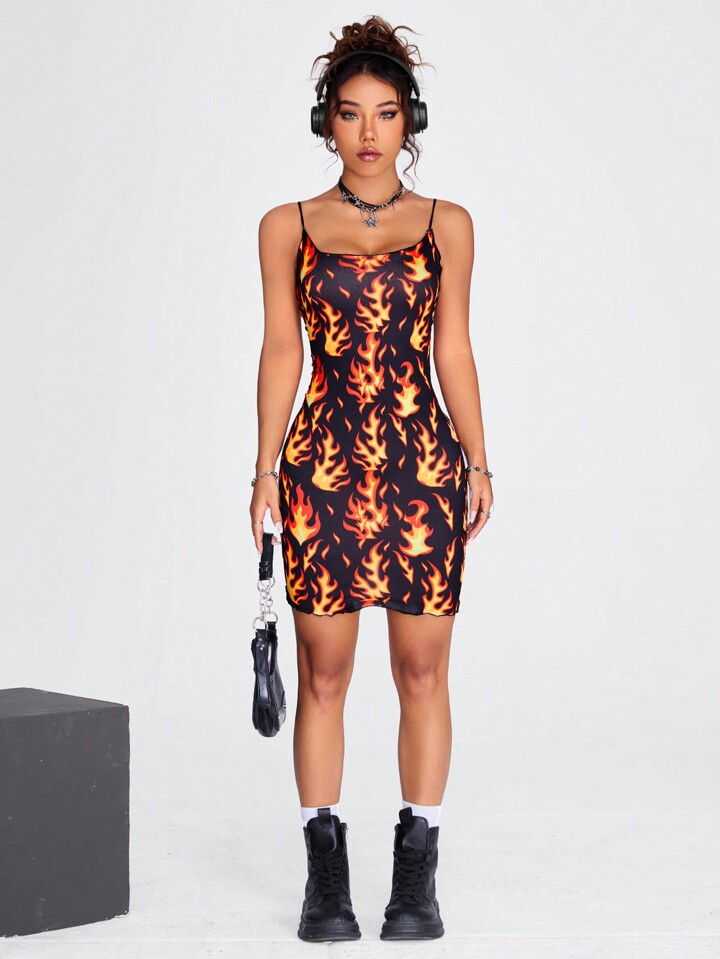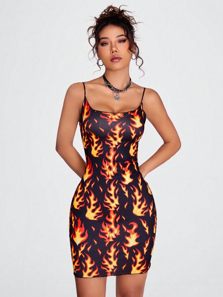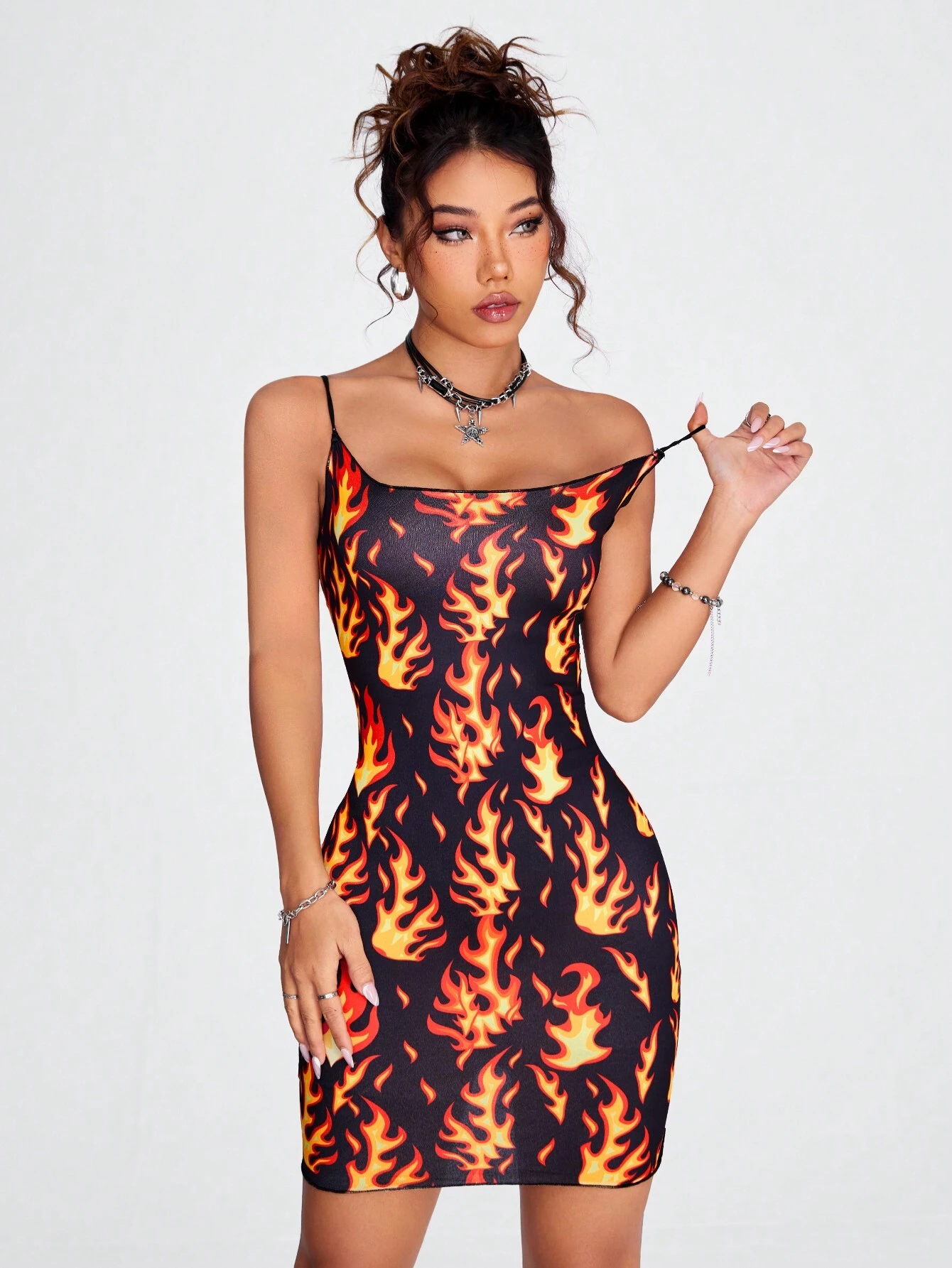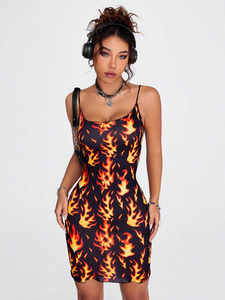 فستان زينة على شكل نبات بطباعة شاملة كاجوال