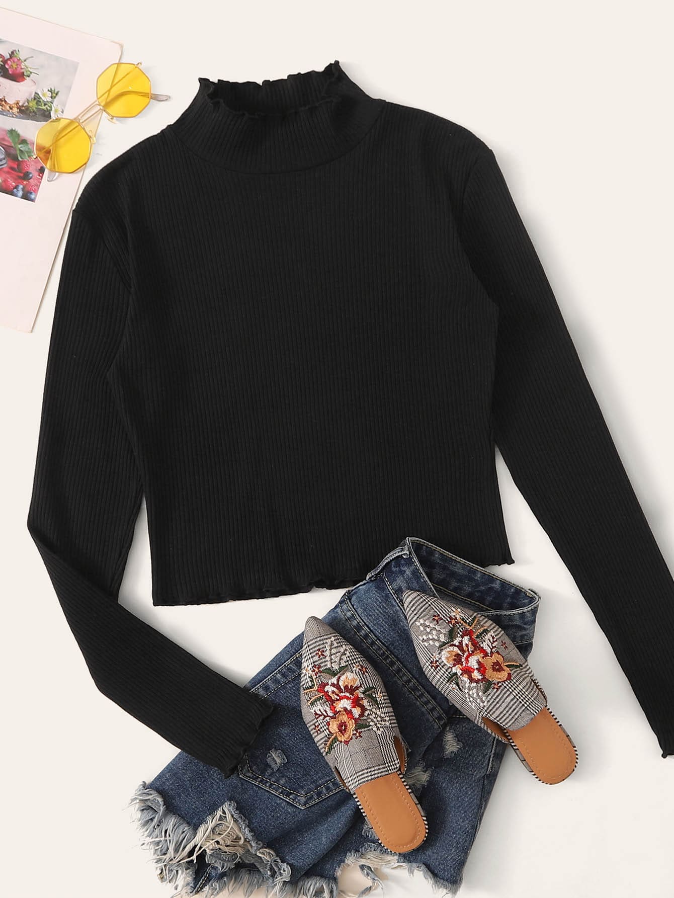 تي شيرت قصير ومحيك المضلع ووقوف الياقة