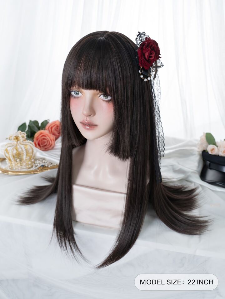 شعر مستعار طويل مستقيم لألياف الاصطناعية منسوج مع شعر ناصية