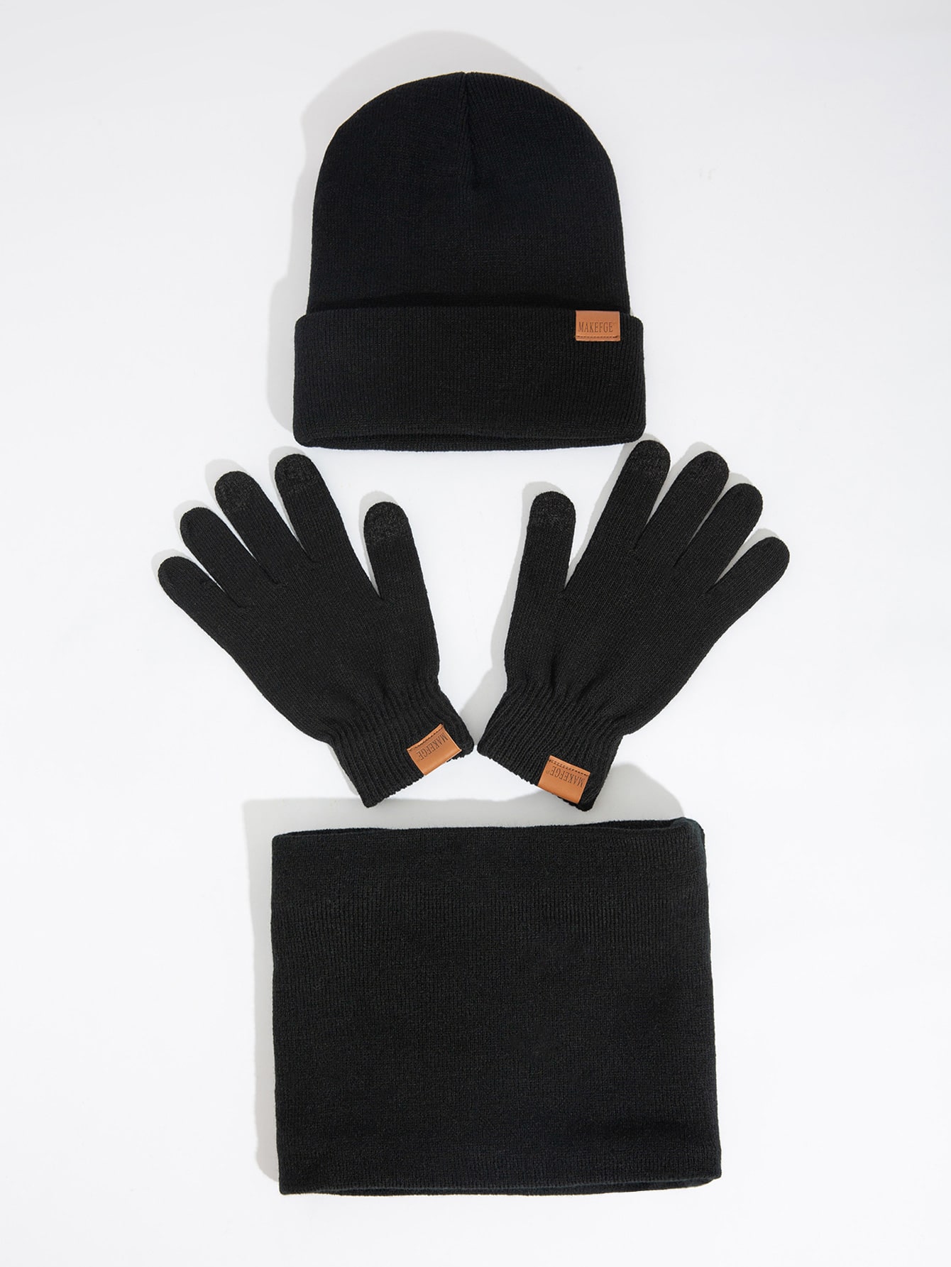 MAKEFGE للرجال ديكوتر تسمية عبارة قبعة صغيرة & قفازات مع وشاح غير منتهري لفصل الشتاء خارجي