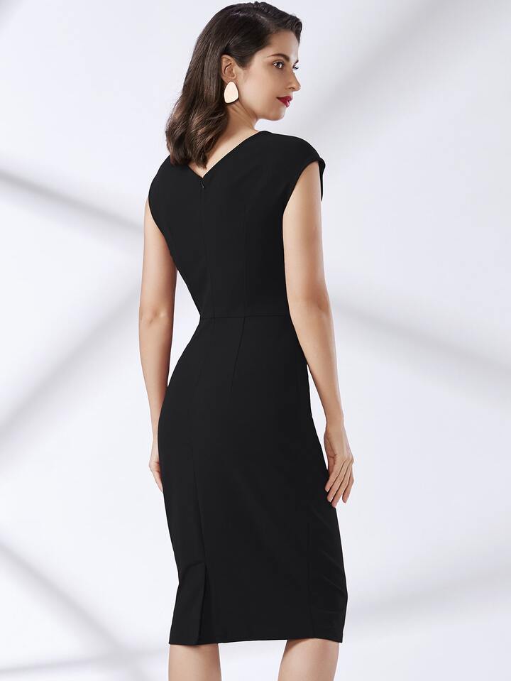 MIUSOL فستان مدرز مطوي وبسستة خلفي