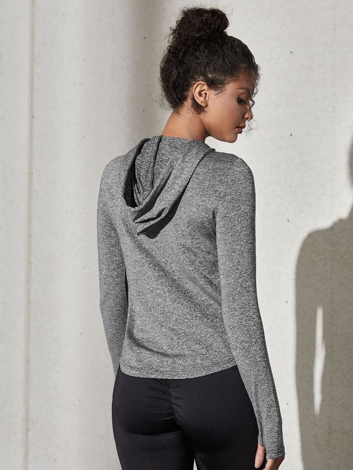 بلوزة رياضية ذات رقبة مزججة مطبوع بصبغة ملونة مع ثقوب لإبهام اليد، هودي منسدل مناسب للخريف