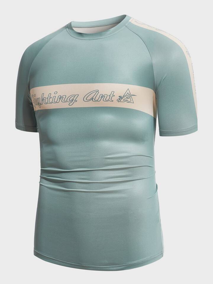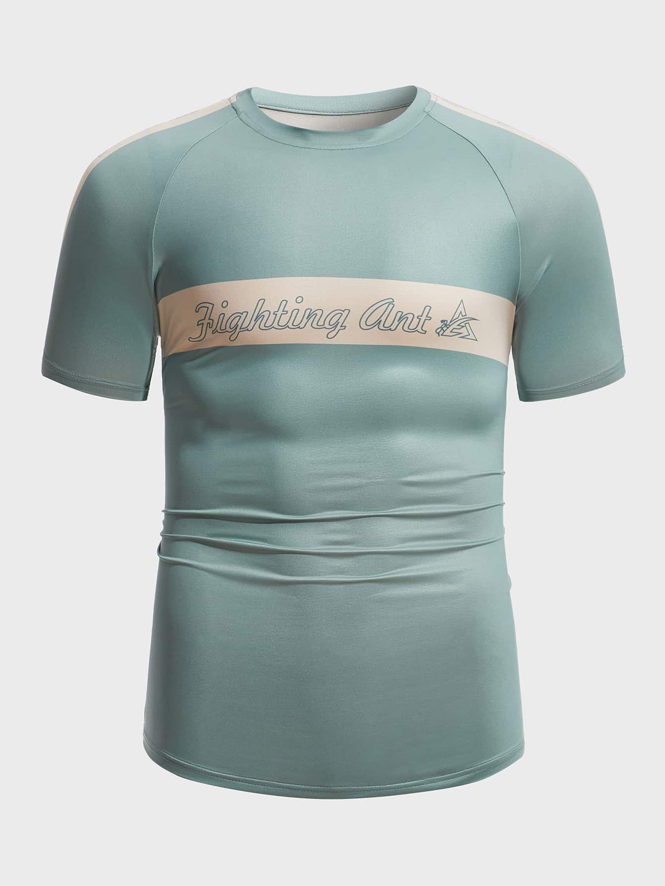 تي شيرت رياضي بجرافيك عبارة بألوان متجانس للرجال