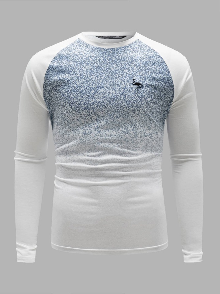 تي شيرت باكمام راجلان ومطرز بطائر البشروس للرجال