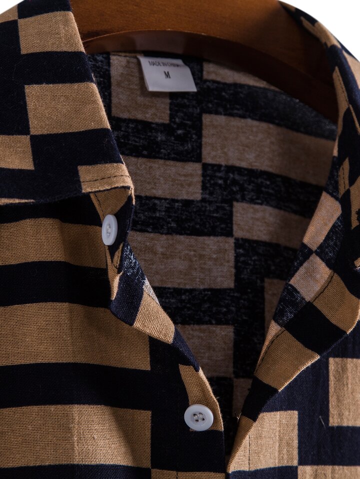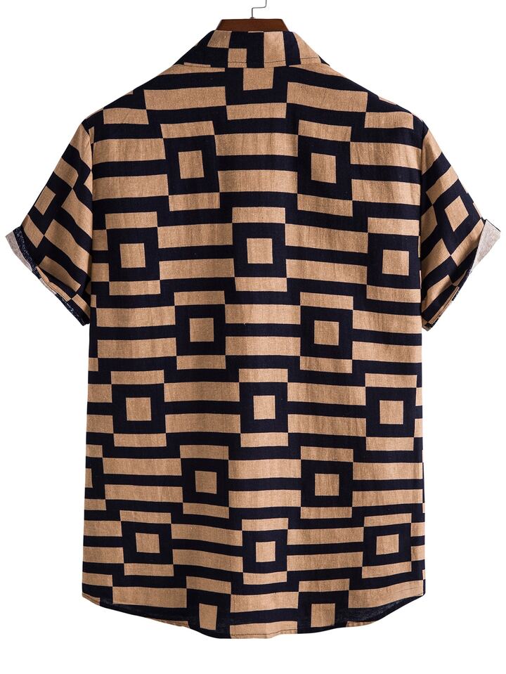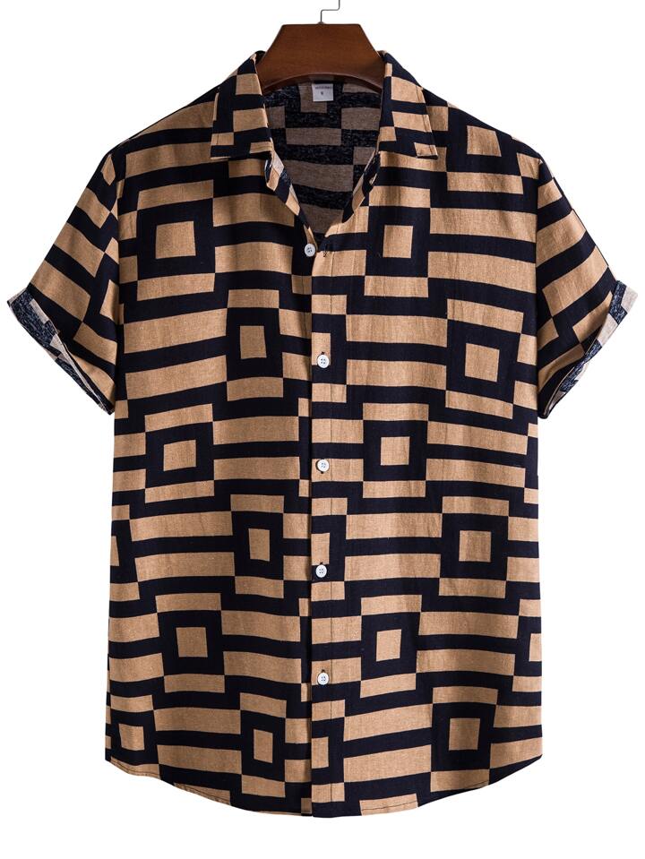 قمصان رجال بازرارأمامية تصميم الهندسة كاجوال