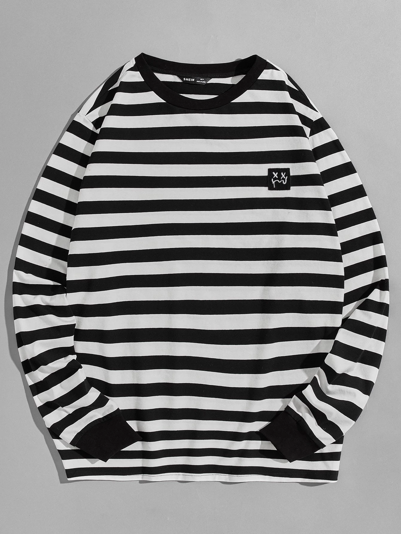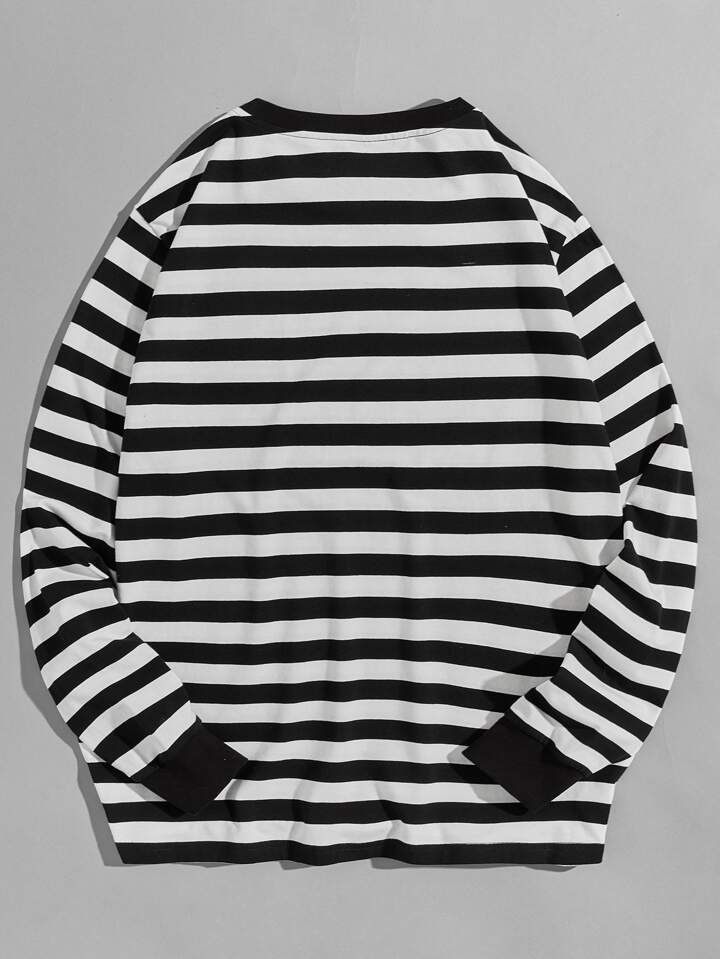 تي شيرت مخطط مطرز بجرافيك للرجال