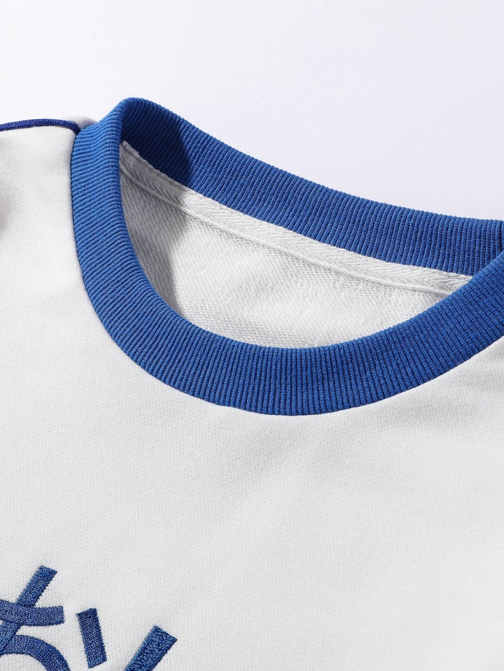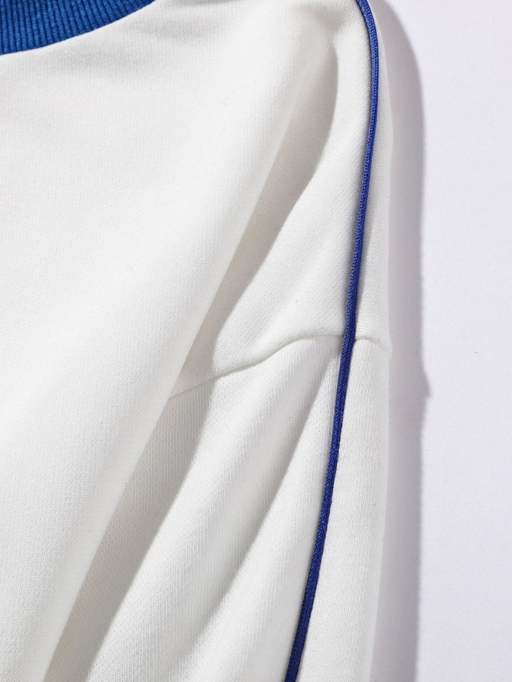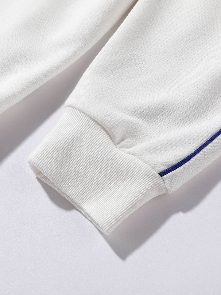 بلوزة رياضية طويلة الأكمام مطرزة بحرف ياباني مع شريط جانبي، لون أبيض، ملابس الشارع اليابانية، للخريف