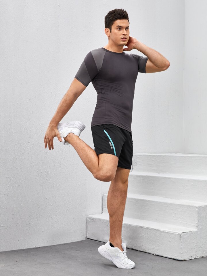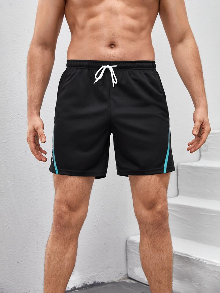 شورت رياضي برباط خصر بجرافيك عبارة للرجال