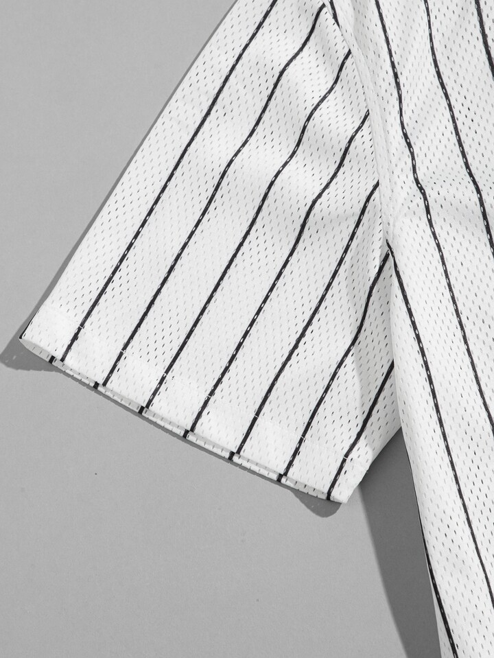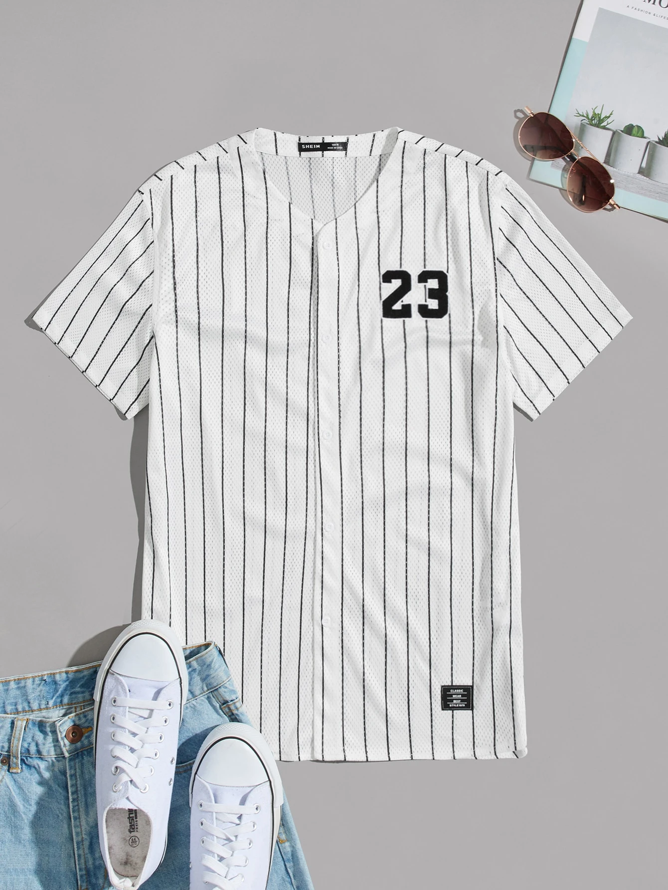 قميص طباعة رقم بتفاصيل مرقع مخطط شبكة للرجال