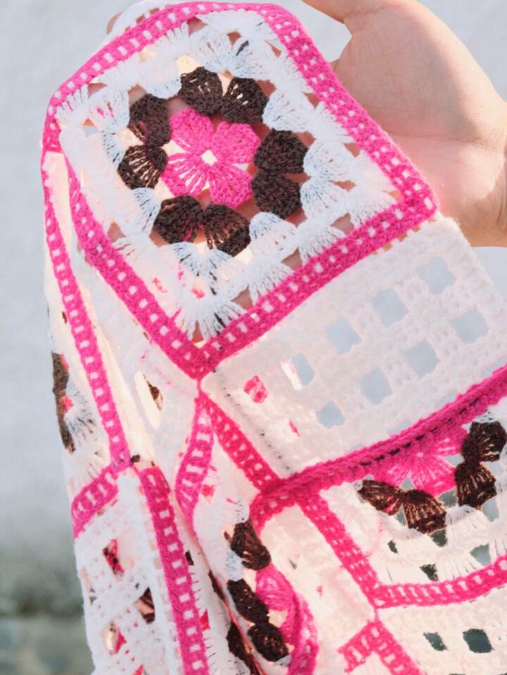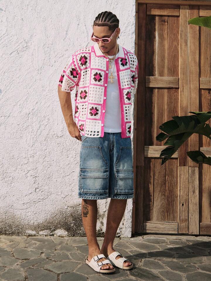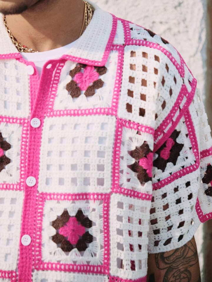 Casual كارديجان مُنسوج قصير الأكمام بأزرار أمامية بلون متباين مثقوب، كاجوال