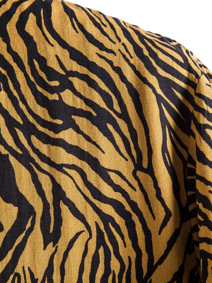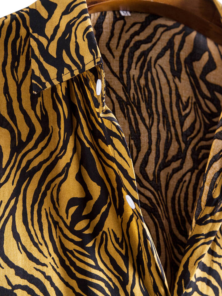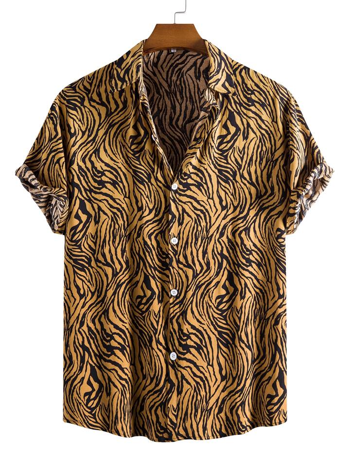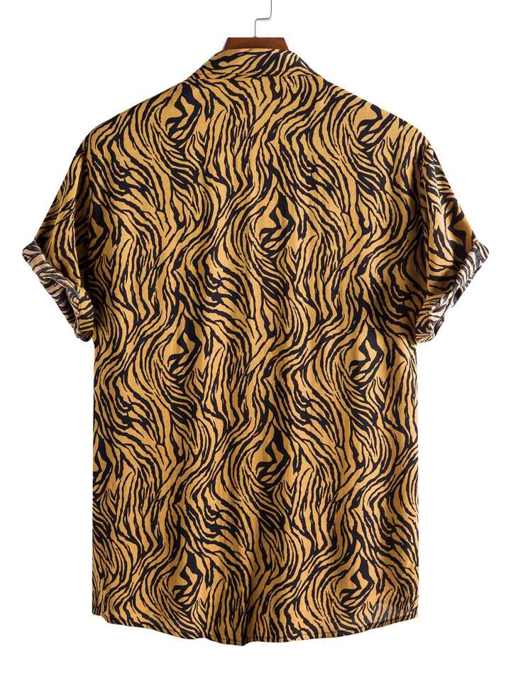 قميص رجالي بأزرار و طبعة خطوط الزرافة العشوائية، قصة ضيقة وأكمام قصيرة عنق منحني قميص ألوان جرافيك جميلة