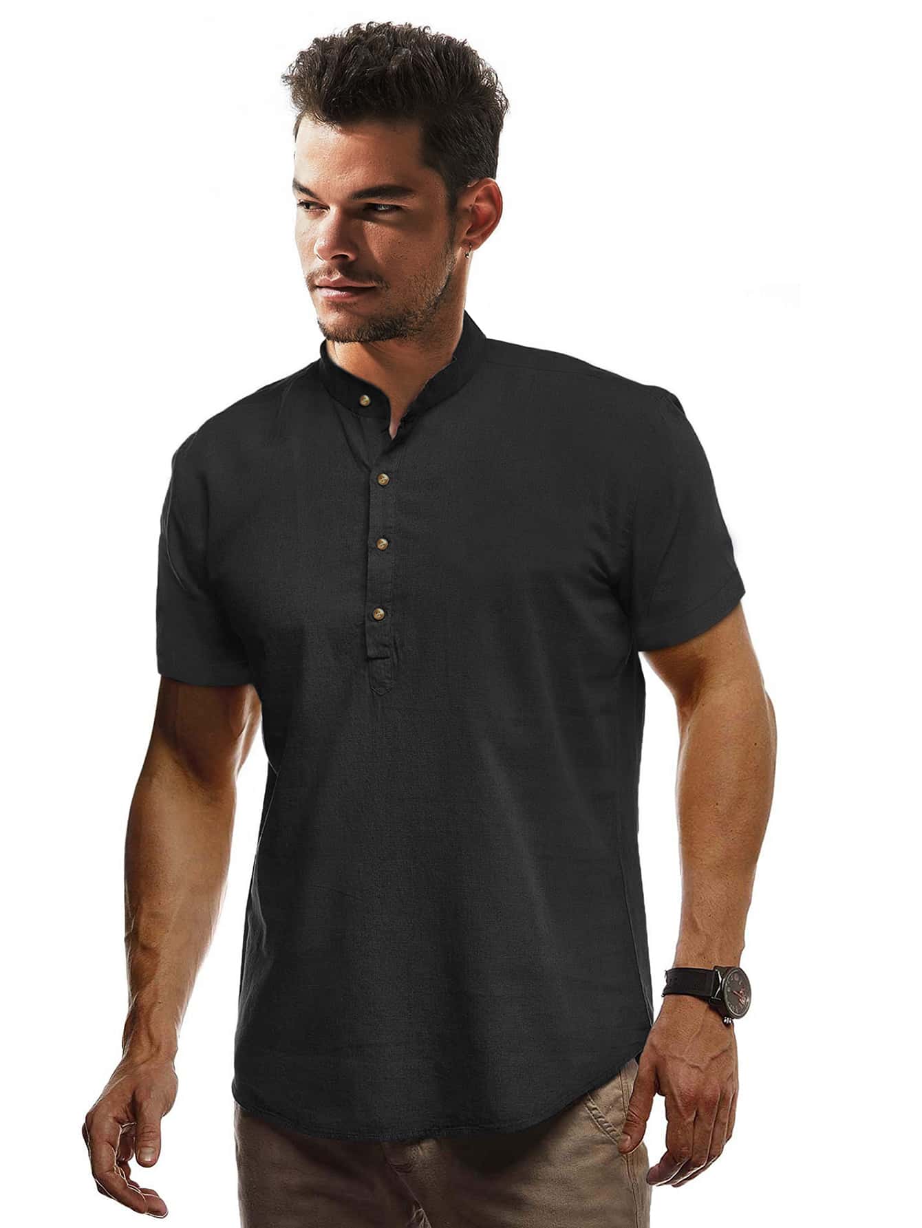 قميص بنصف فتحة عنق بأزرار وبياقة عمودي للرجال