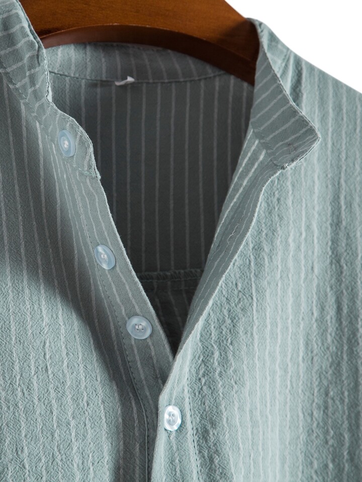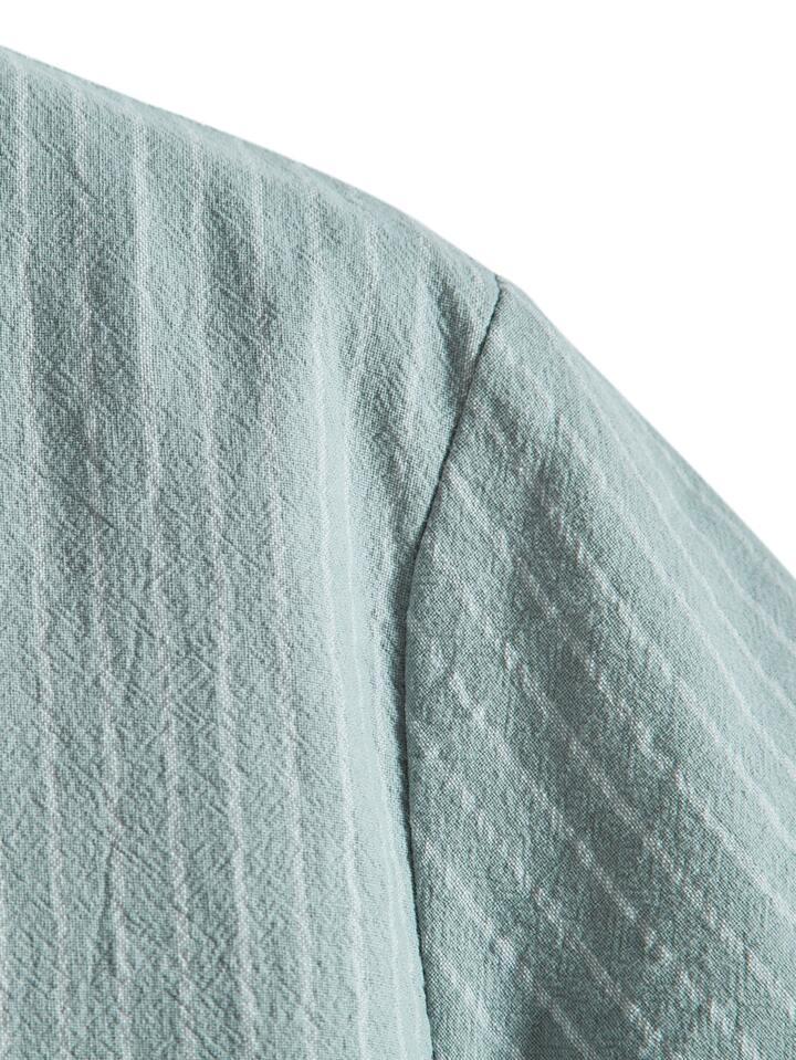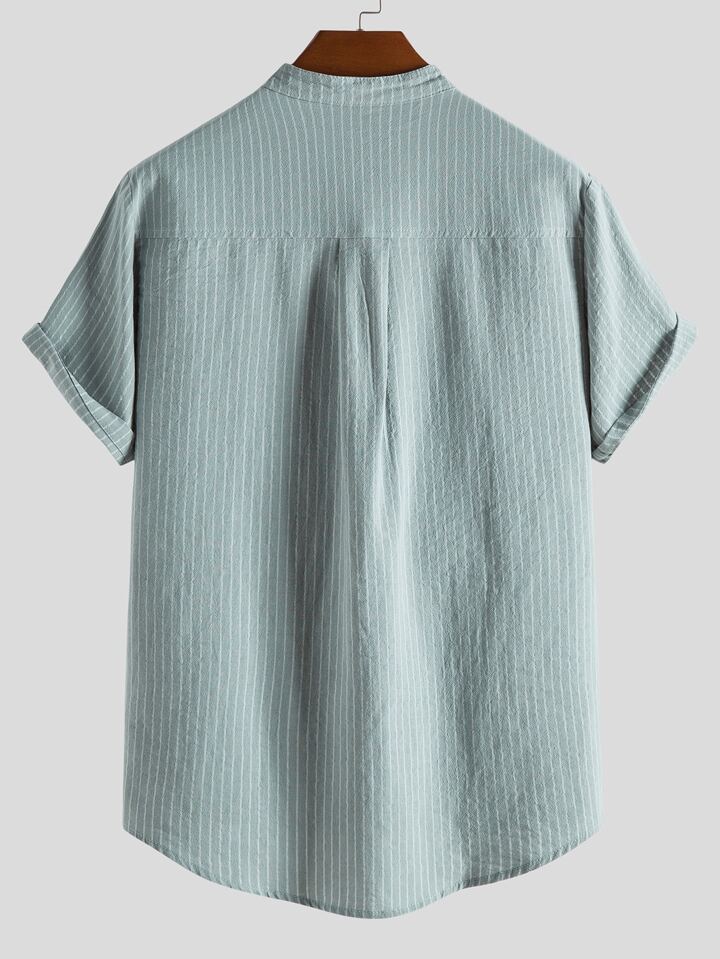 قميص رجالي كاجوال بدون أكمام مخططة بنصف أزرار، بتصميم عالي من الأمام ومنخفض من الخلف، هدية لصديقك