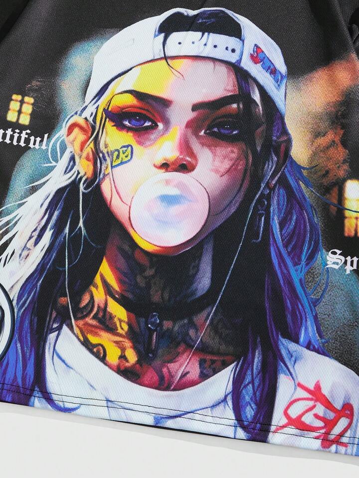 Anime تي شيرت طباعة الرسوم المتحركة للرجال، مناسب للارتداء اليومي، للربيع/الصيف