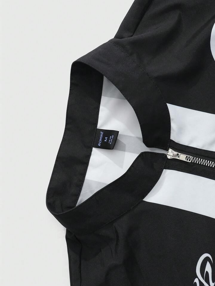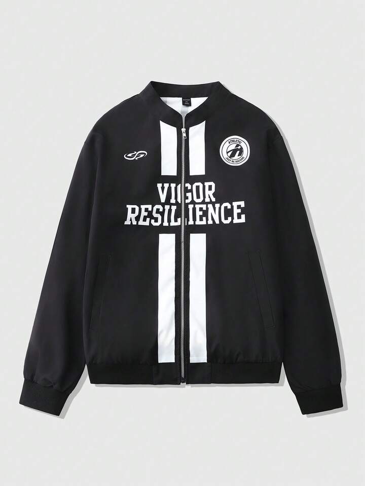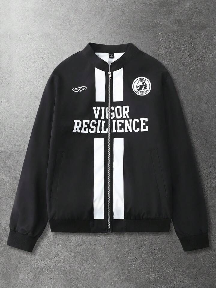 جاكيت رجالي كاجوال مطبوع بطباعة إنجليزية، بسحاب، أسلوب شارع موضة أمريكي رياضي، للربيع/الخريف