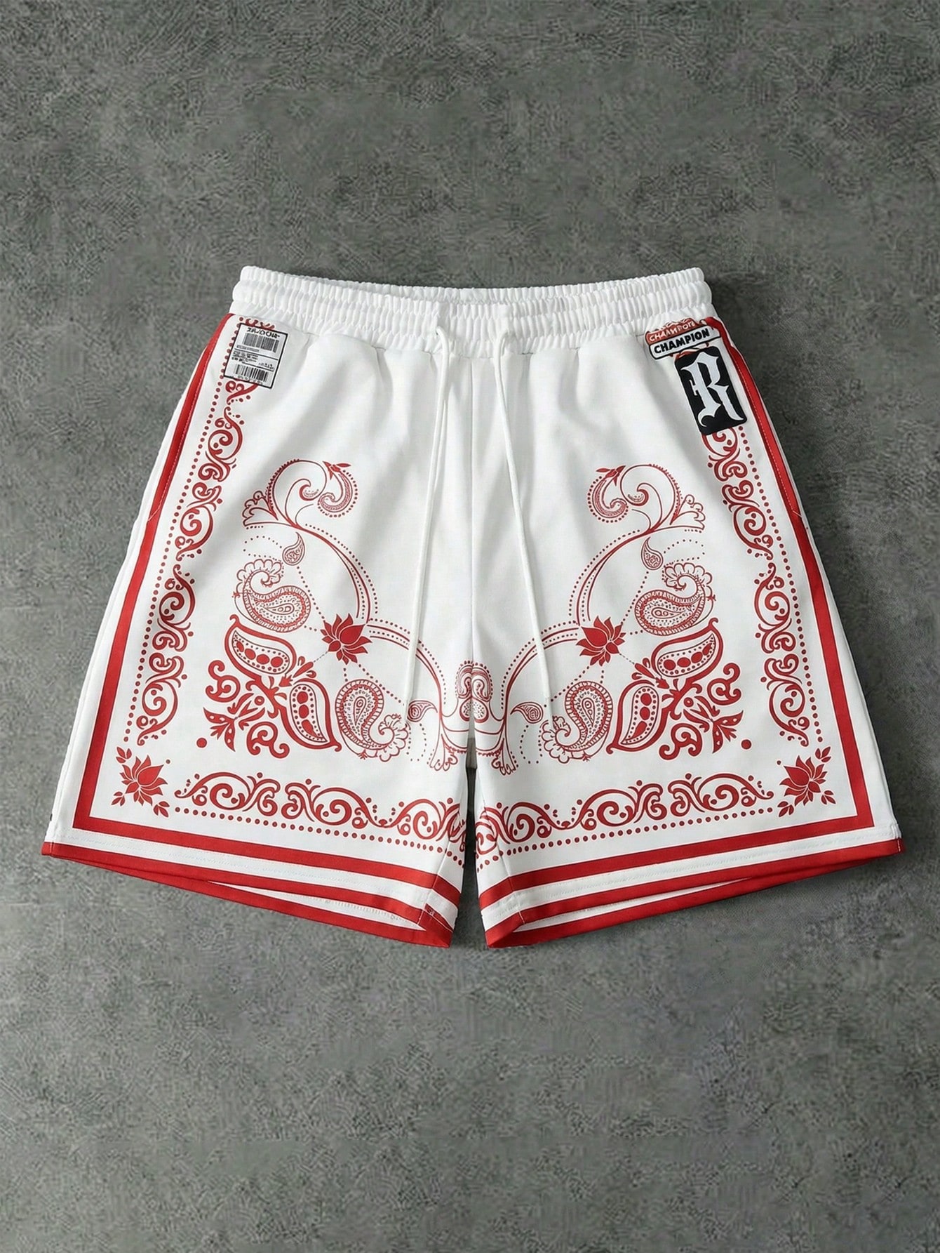 Casual شورت رجالي كاجوال فضفاض بخصر رباط مطبوع بطبعة الكاجو