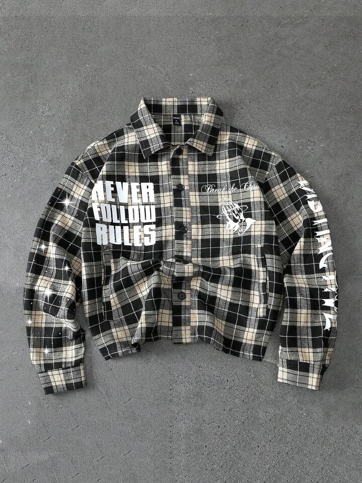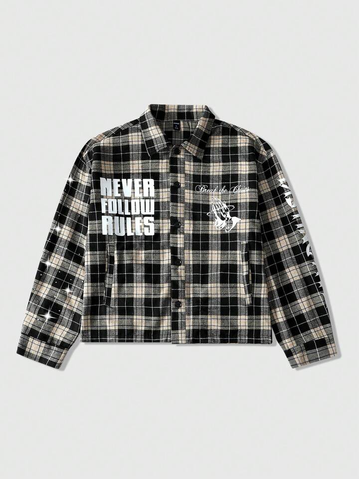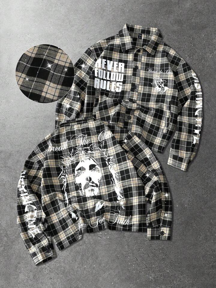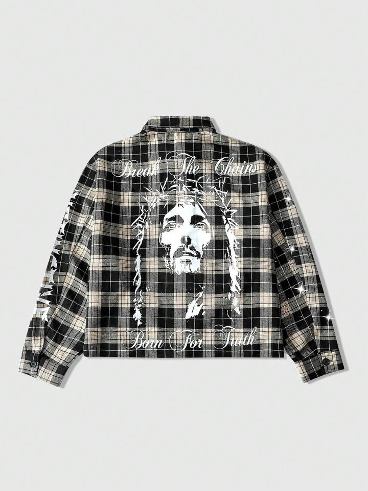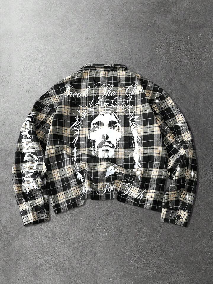 معطف صوفي مطبوع بالشكل والرقعة الكاجوال للرجال، للربيع/الخريف